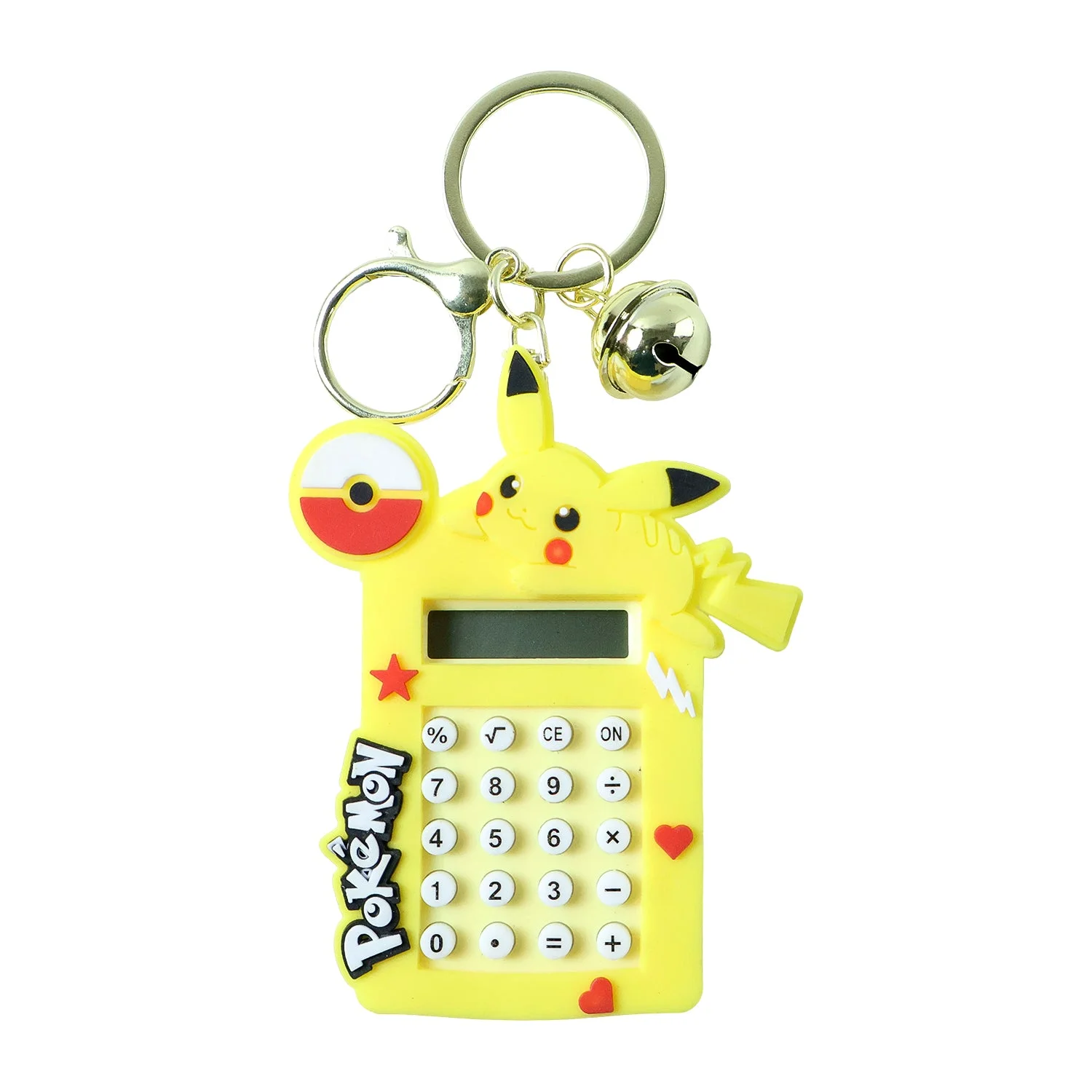 cute yellow cartoon calculator keychain, mini digital calculator, pocket size calculator, portable keychain calculator, calculator with bell charm, metal key ring calculator, kids mini calculator, student calculator keychain, everyday use mini calculator, novelty cartoon calculator, small digital calculator keychain, handheld pocket calculator, fun character calculator keyring