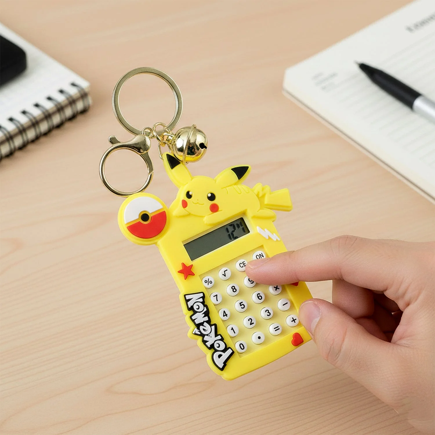 This cute yellow cartoon character mini calculator keychain is a perfect blend of fun design and everyday utility. Designed in an attractive cartoon theme with bright colors, it works as a fully functional digital calculator while also serving as a stylish keychain accessory. Its compact pocket-size design makes it easy to carry in school bags, backpacks, purses, or pockets without adding bulk. The attached sturdy metal key ring and decorative bell enhance both durability and visual appeal. Ideal for quick math calculations on the go, this calculator keychain is especially loved by kids, students, and stationery enthusiasts who enjoy cute yet practical accessories.