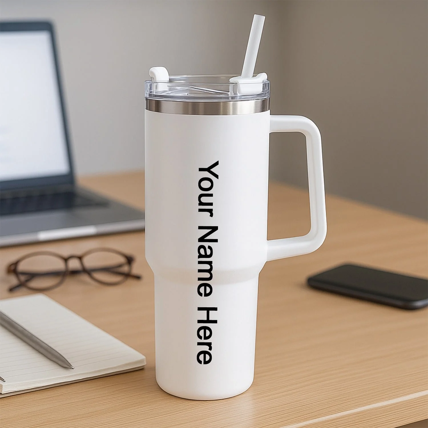 insulated mug, thermal mug, travel mug, hot and cold beverage mug, drinkware, straw mug,office drinkware,desk mug with straw,large handle mug, car cup holder mug, matte black mug, Tumbler