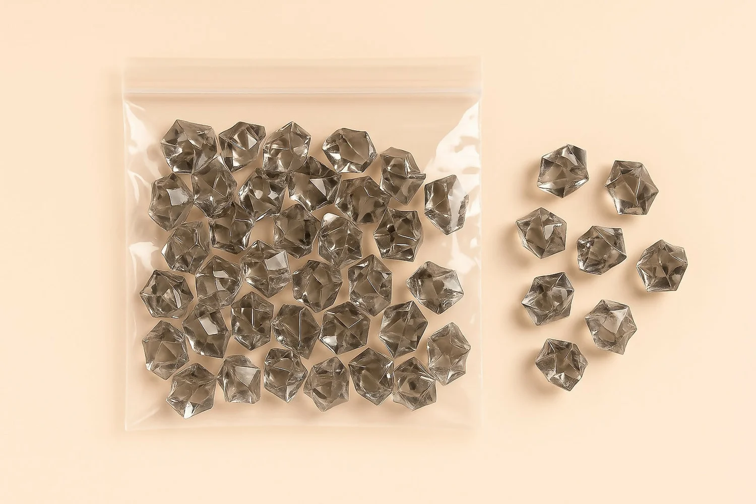 Enhance your home décor with these beautiful decorative acrylic crystal stones. Designed with a faceted crystal-like finish, these stones add sparkle and elegance to vases, bowls, centerpieces, and craft projects. Perfect for home decoration, wedding table décor, party setups, and DIY craft work, these lightweight stones reflect light beautifully to create a luxurious look. Ideal for filling glass vases, candle holders, and decorative bowls to elevate the aesthetic of any space.