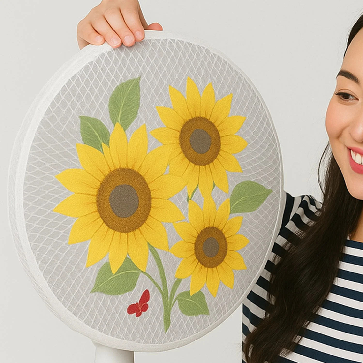 Decorative Mesh Sunflower Print Fan Dust Cover – Round Net Shield for Ceiling/Table Fans
