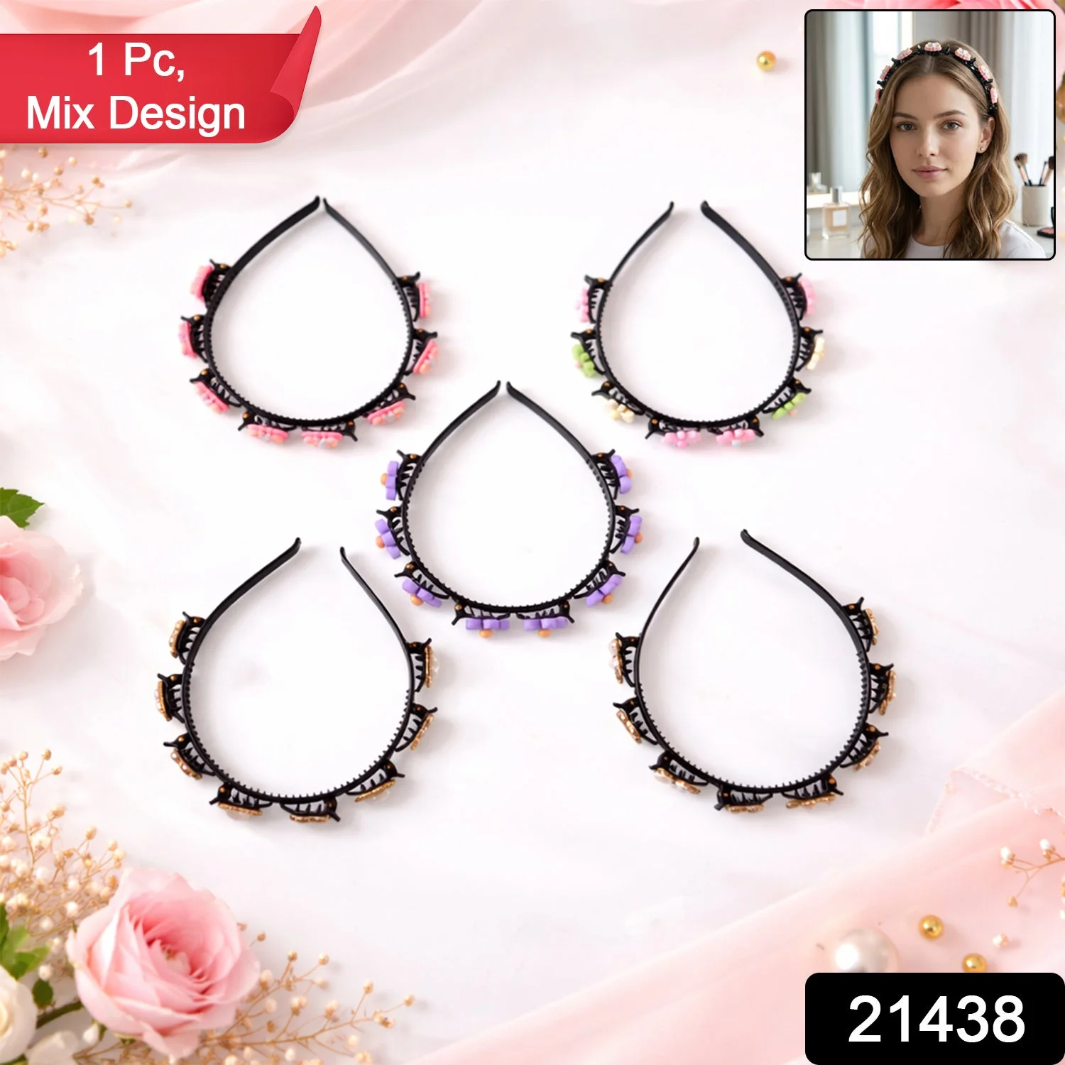 Decorative Floral Beaded Hairband for Women & Girls 1 Pc – Stylish Fancy Hair Hoop with Colorful Beads & Flower Design Comfortable Hair Accessory for Daily Wear Party Look and Fashion Styling (1 Pc, Mix Design)