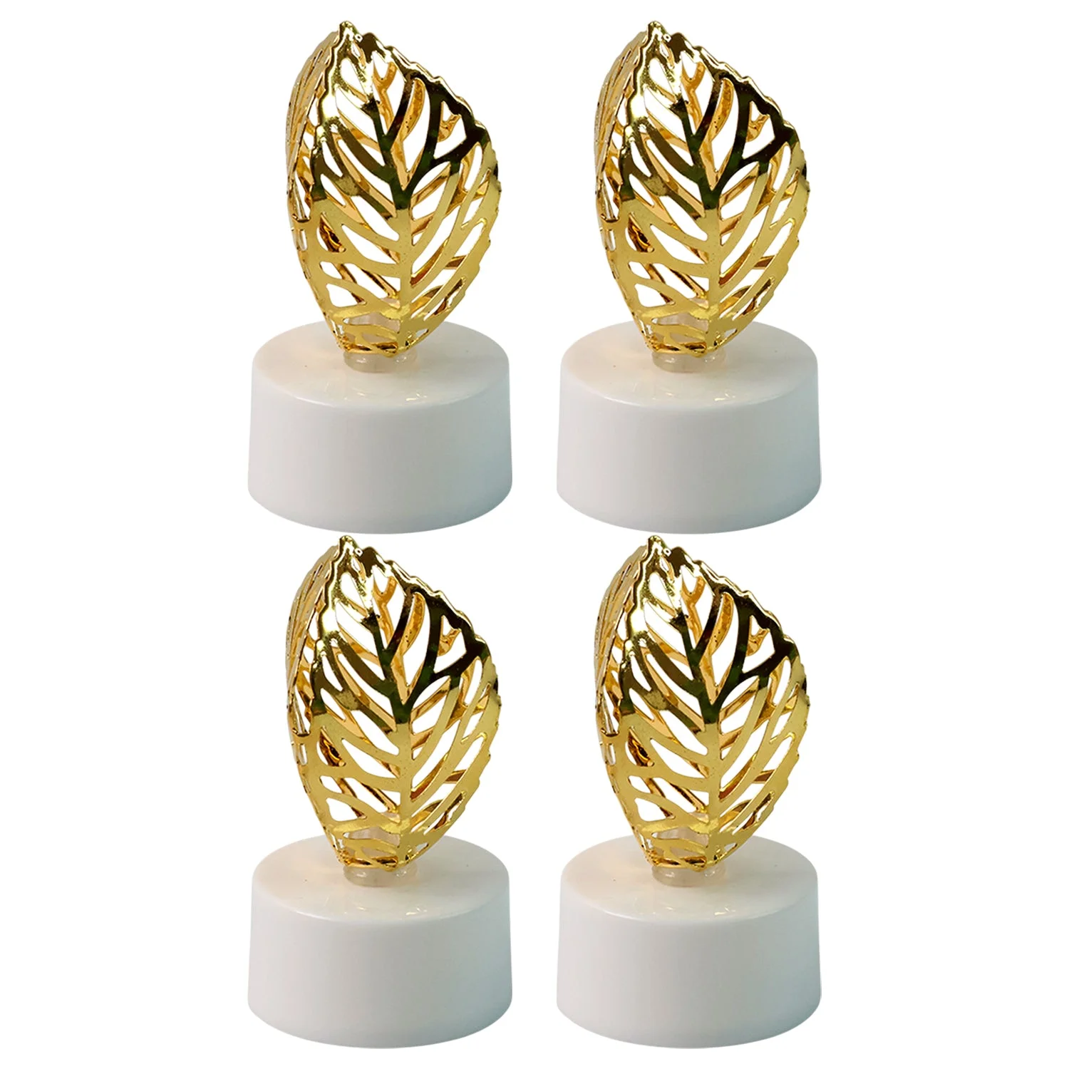 Set of 4 Decorative Golden Leaf Shaped Flameless LED Candles – Flickering Light for Home Décor, Festivals, Weddings, Parties, and Religious Celebrations