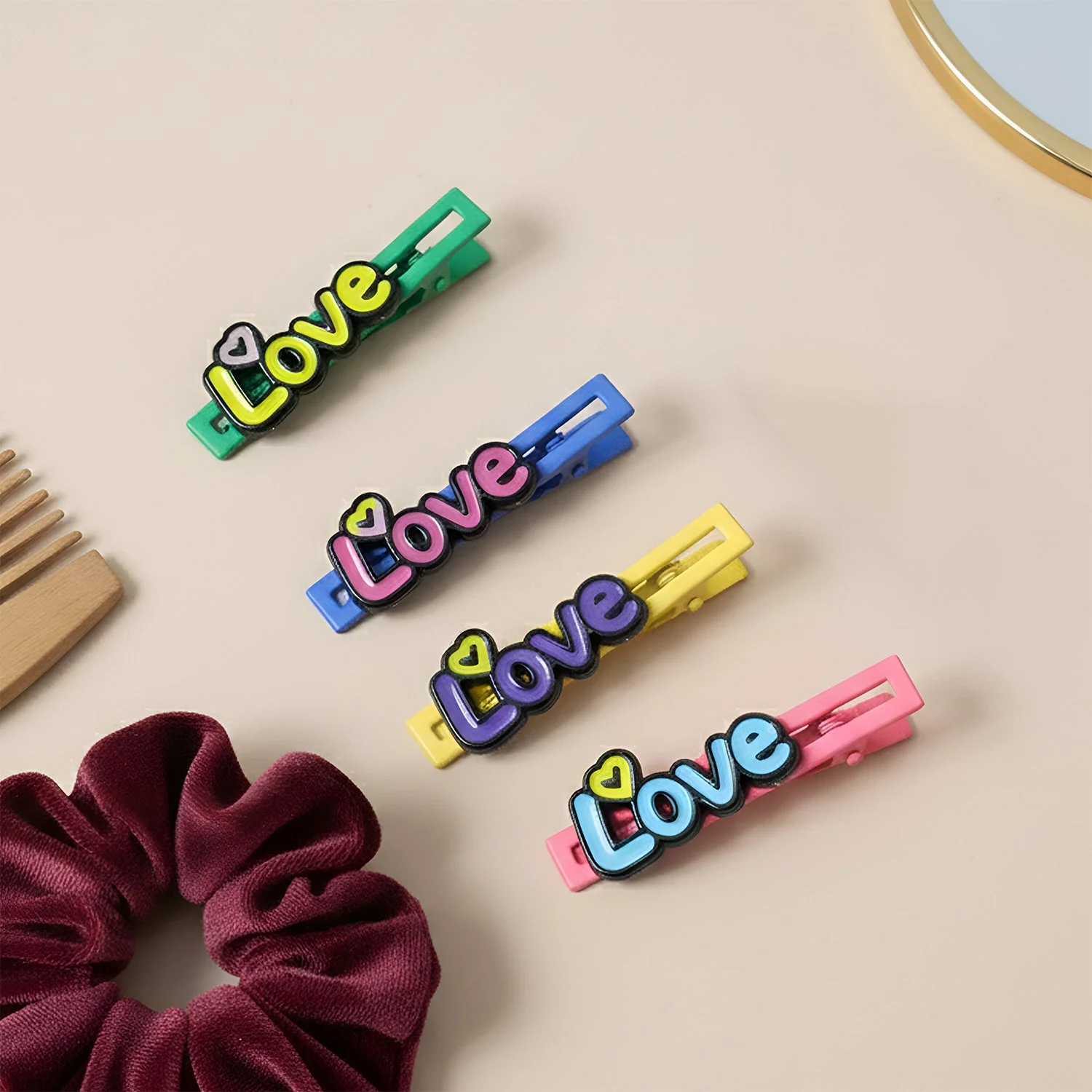 Decorative Hair Clip Set with Stylish Text Design – Everyday Hair Accessories for Girls & Women (Pack of 4 Pieces)