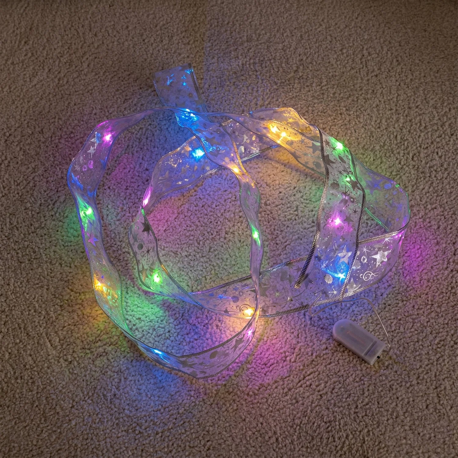 Enhance your festive decorations with this beautifully designed LED ribbon light strip that combines elegance with vibrant illumination. Featuring a flexible ribbon-style design embedded with multicolor LED lights, it wraps easily around trees, railings, walls, or furniture to create a warm and festive ambiance. The soft glowing lights add charm to any space, making it perfect for celebrations, parties, and seasonal decor. Its lightweight and flexible structure allows easy shaping and installation without hassle. A perfect decorative lighting solution to instantly uplift the mood of your home during special occasions.