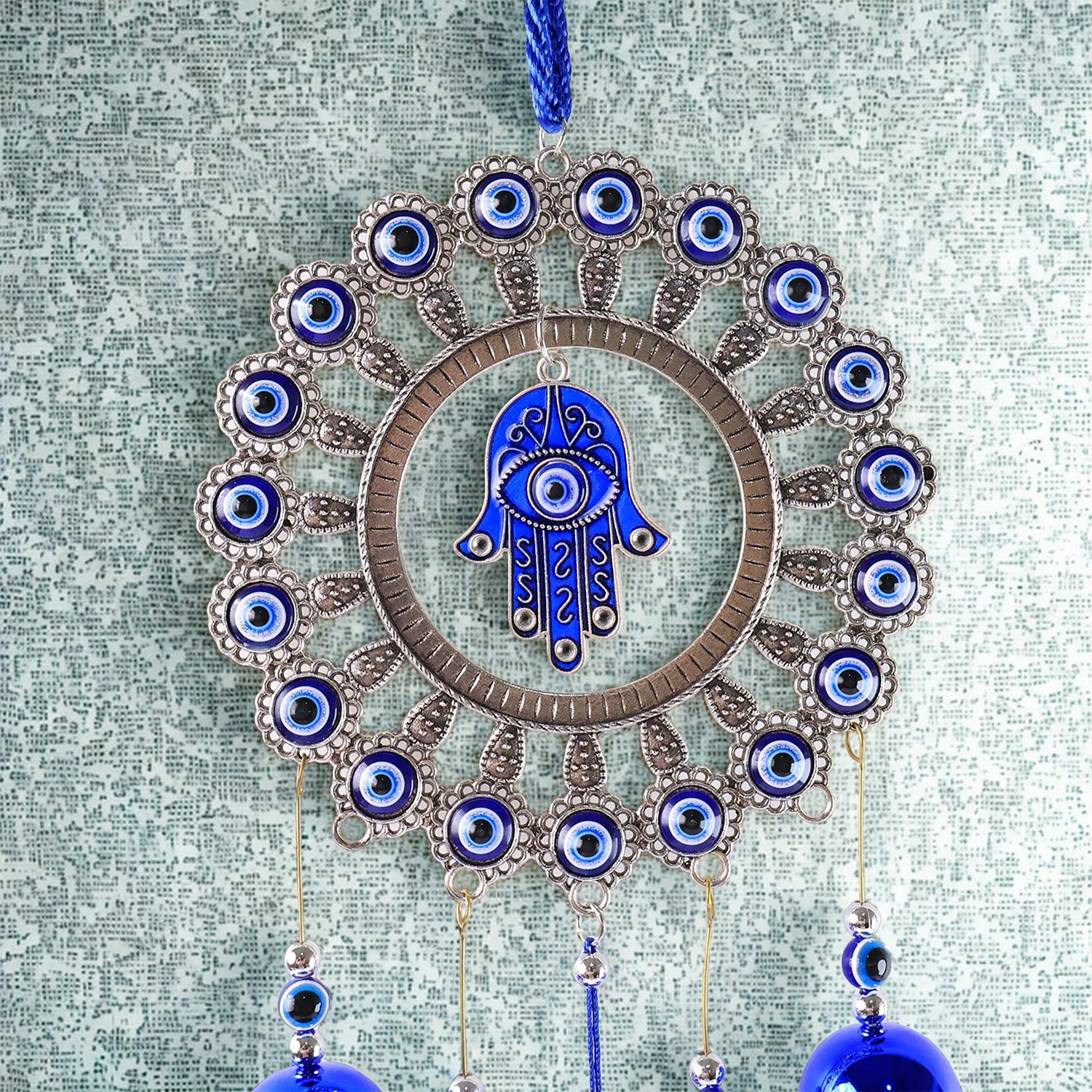 Decorative OM Evil Eye Wind Chime Wall Hanging with Nazar Protection Beads and Blue Metallic Bells – Spiritual Feng Shui Home Decor for Positive Energy, Entrance, Balcony & Meditation Corners (Mix Desin & 1 Pc)