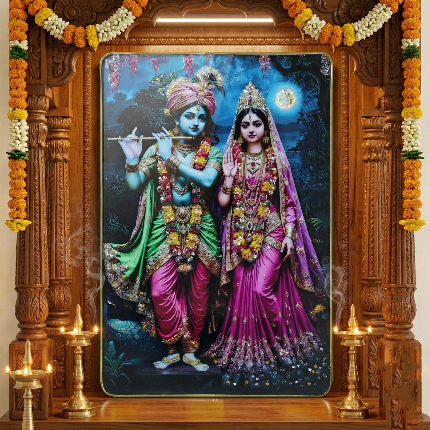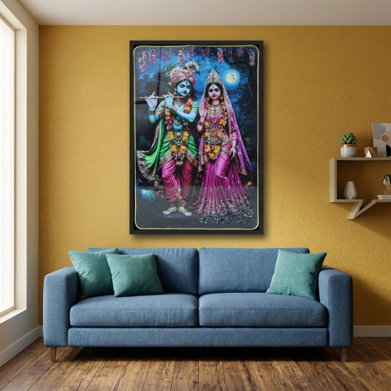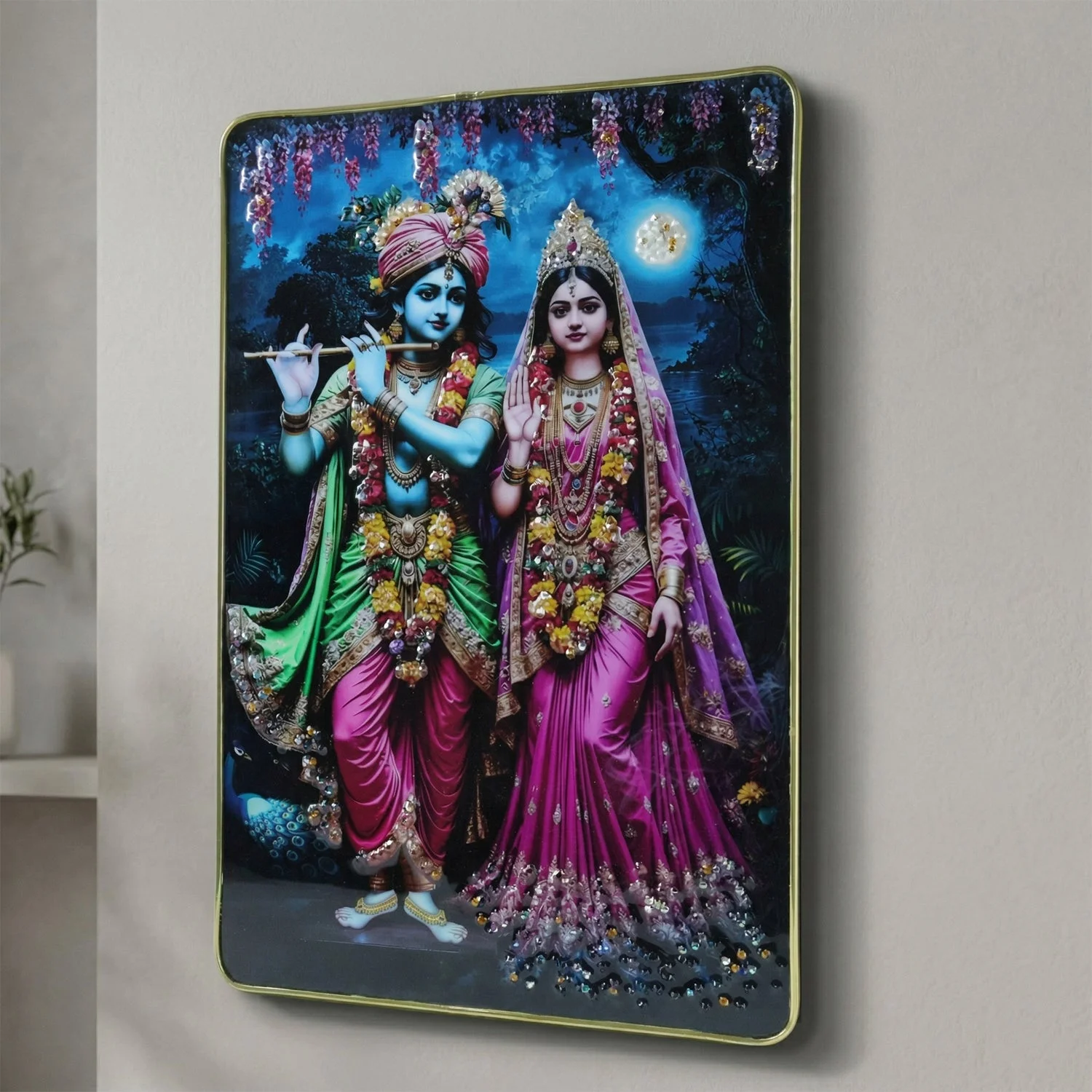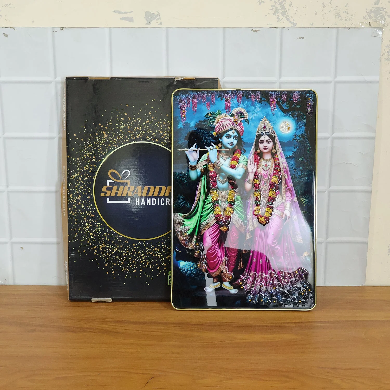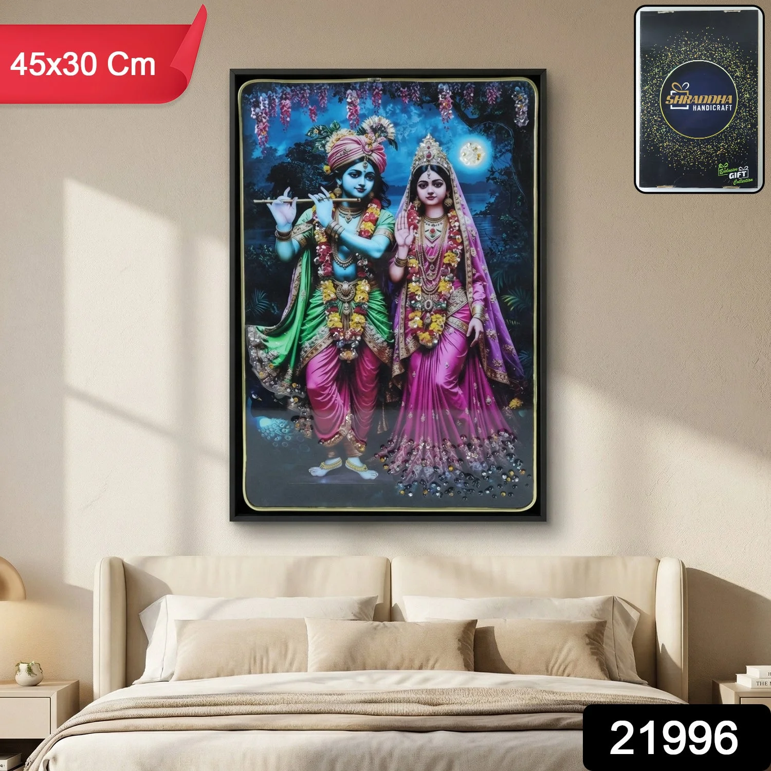 Decorative Radha Krishna Wall Frame 1 Pc 45x30 Cm – Spiritual Wall Art Painting for Home Temple Living Room Bedroom Religious Decorative Photo Frame