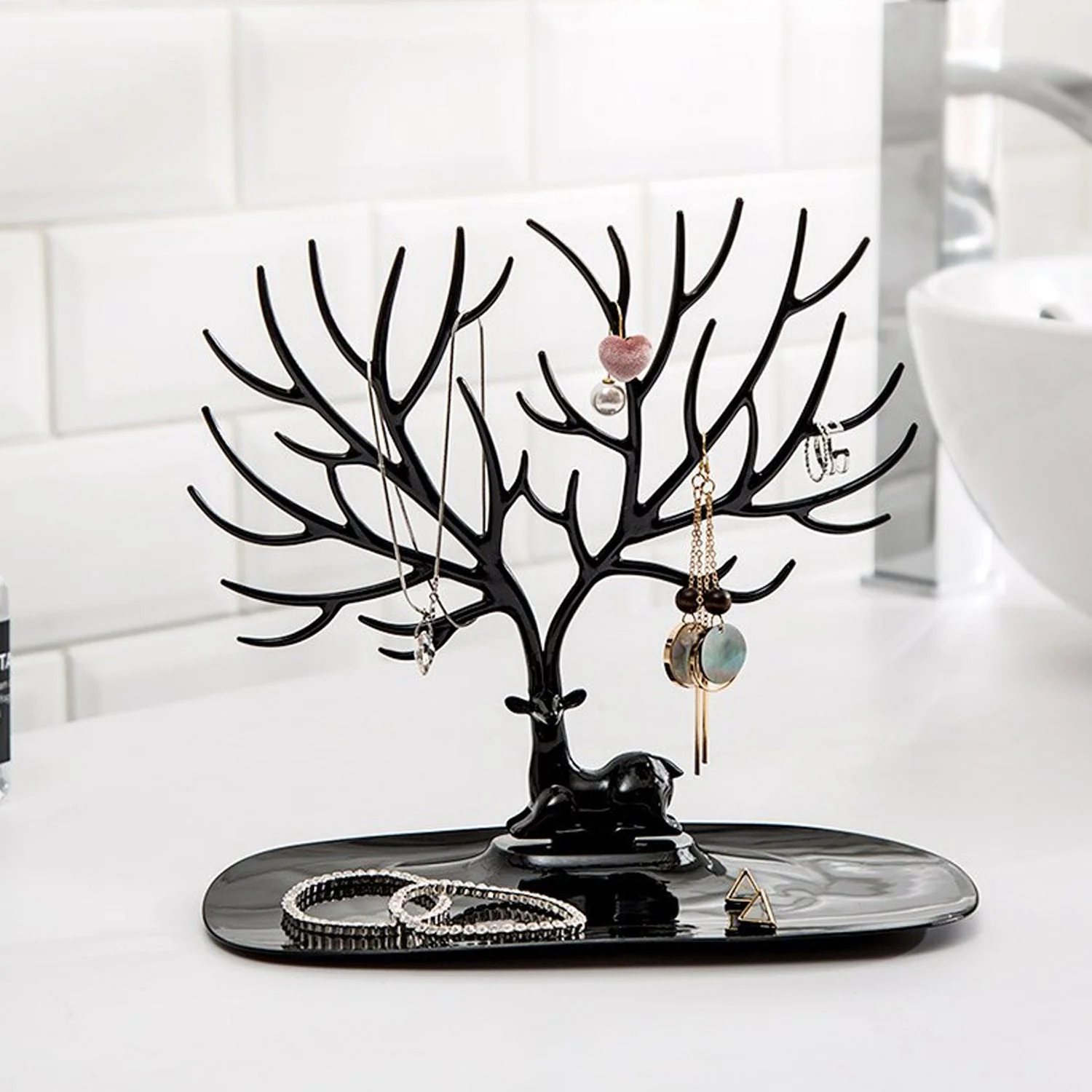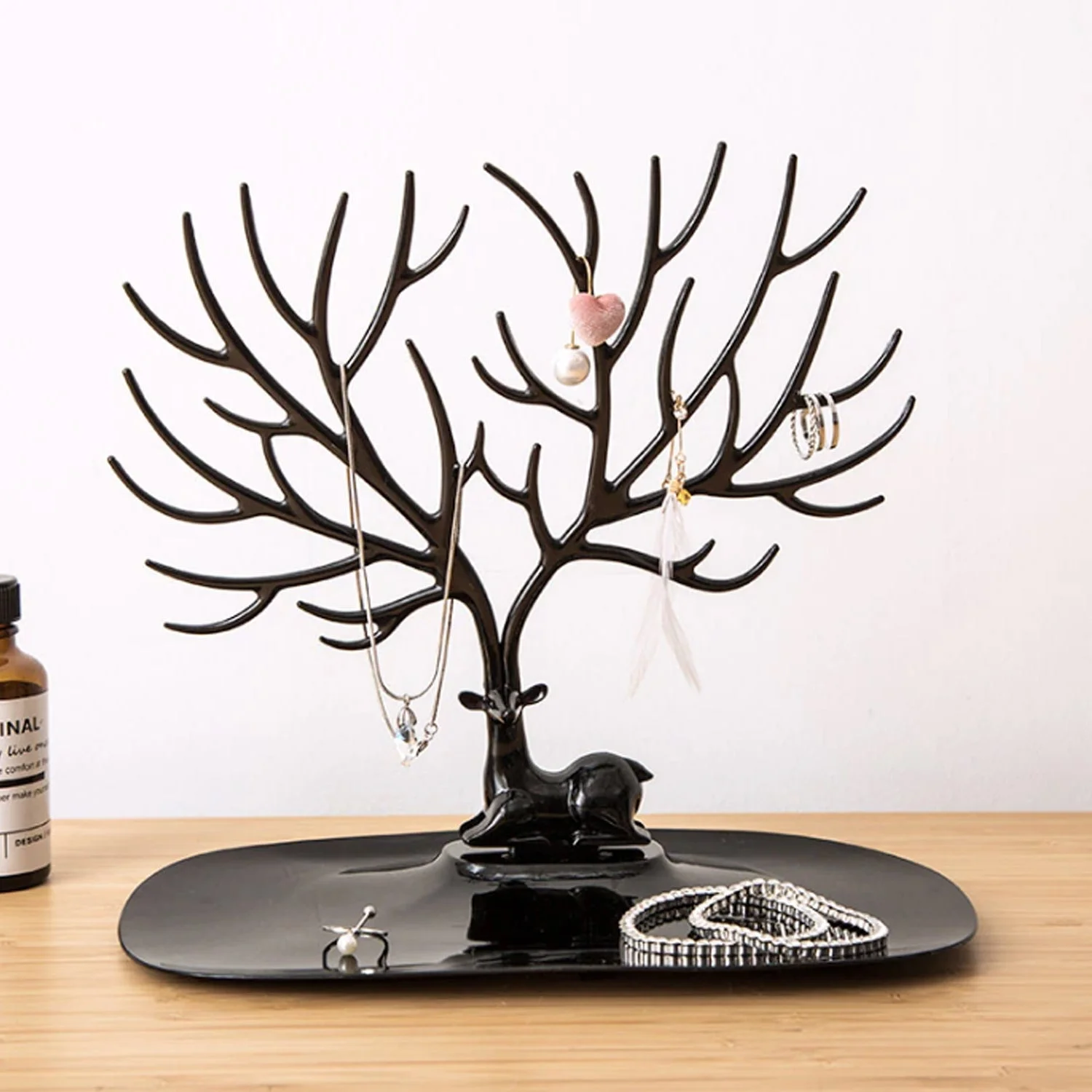 jewelry stand, necklace holder, earring organizer, bracelet display stand, ring holder, accessory organizer, jewelry storage rack,gift for women, fashion accessory storage,deer shaped jewelry stand,black jewelry tray, cute jewelry display stand
