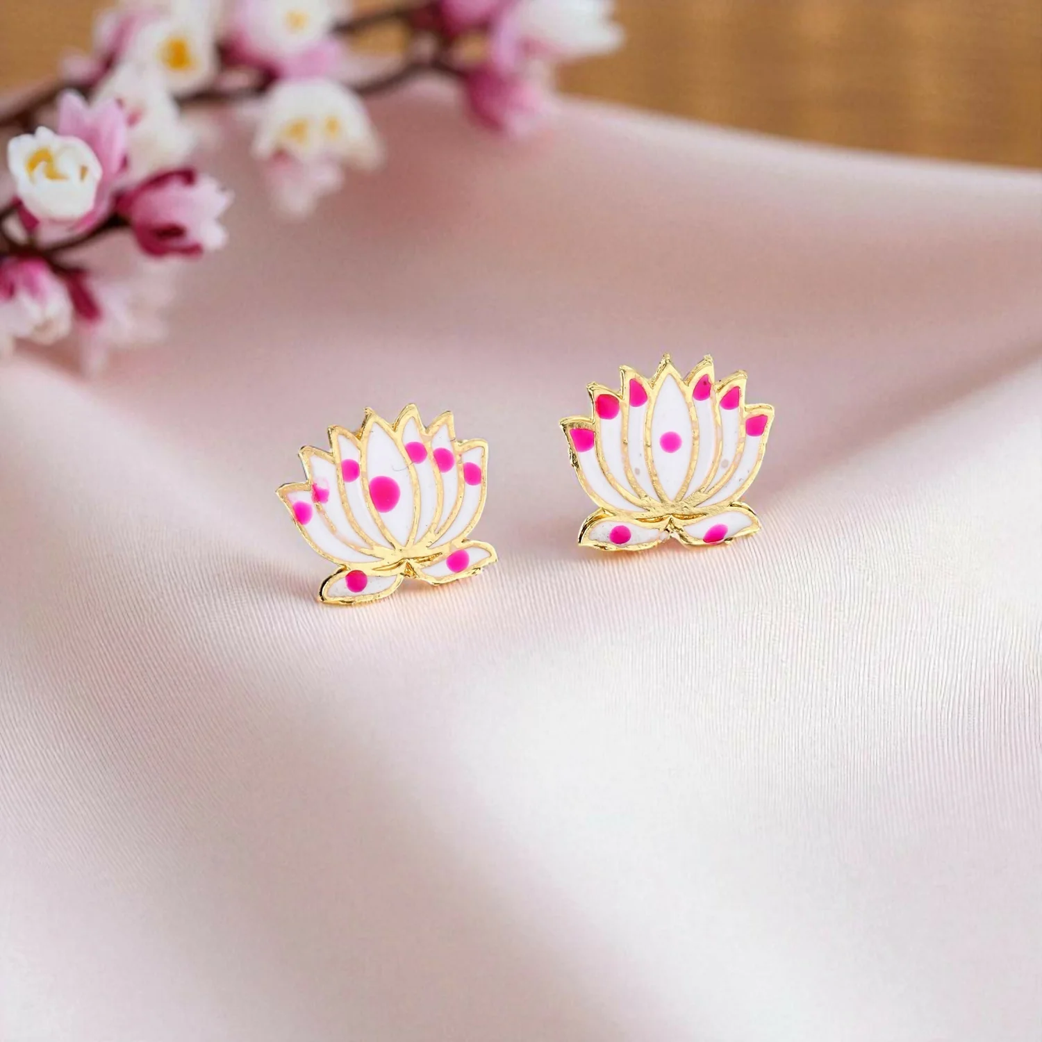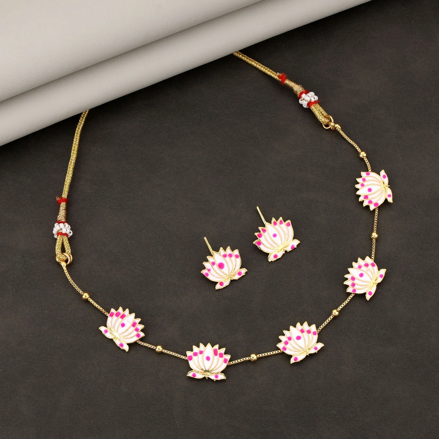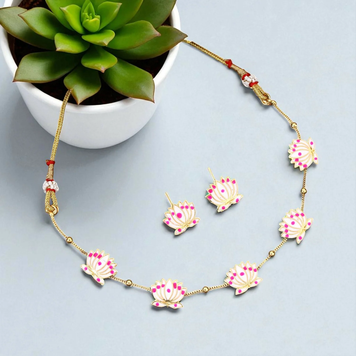 Be the first to review Delicate Lotus Design Necklace Set with Pink and White Enamel!