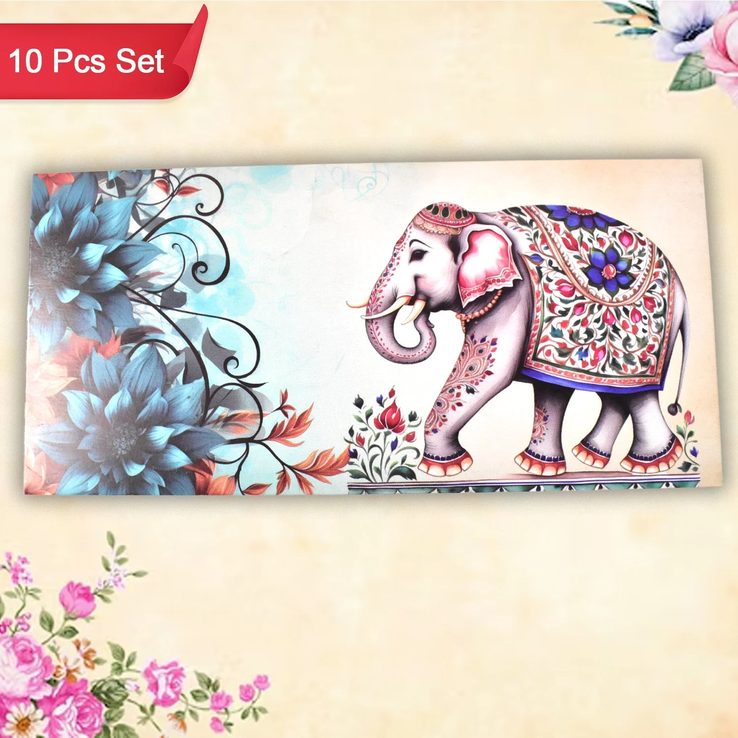 Traditional Wedding Shagun Money Envelope Elephant Design Pack of 10 Pieces