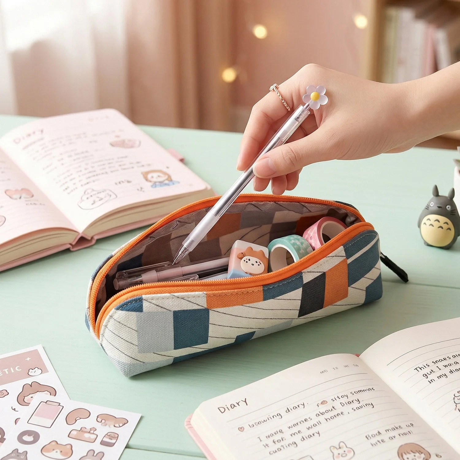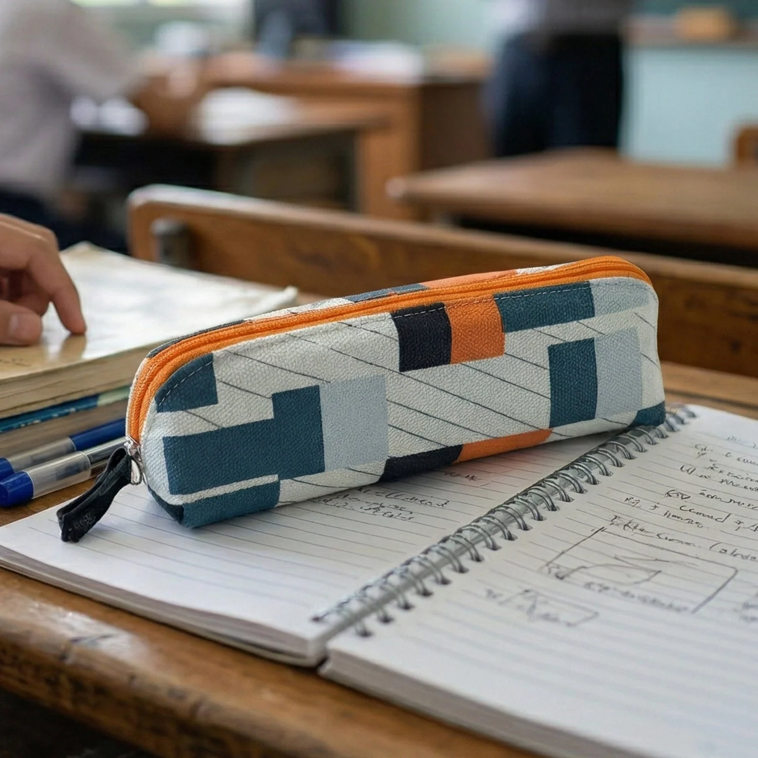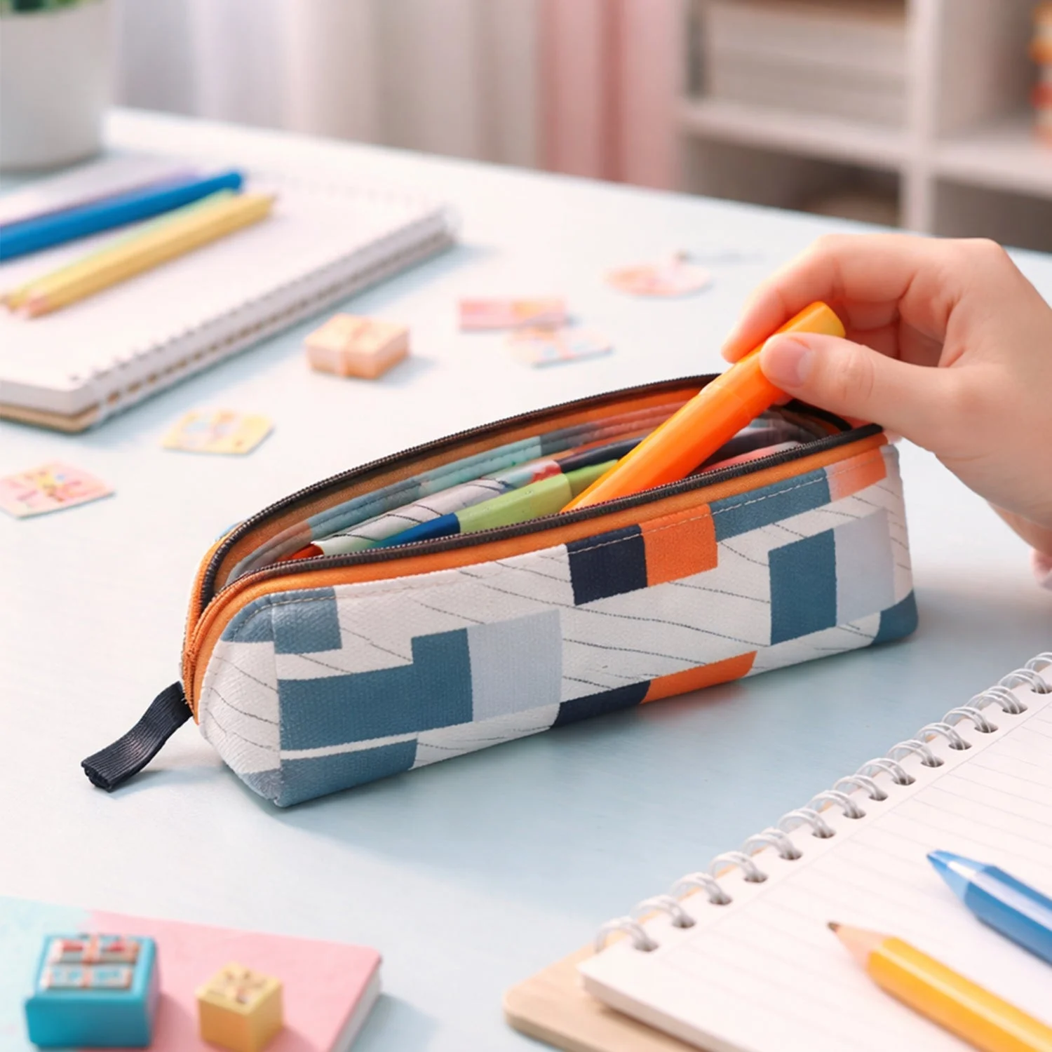 Designer Fabric Zipper Pencil Pouch 1 Pc – Multipurpose Stationery Organizer Case for School Office Travel Pen Pencil Holder Compact Storage Utility Pouch