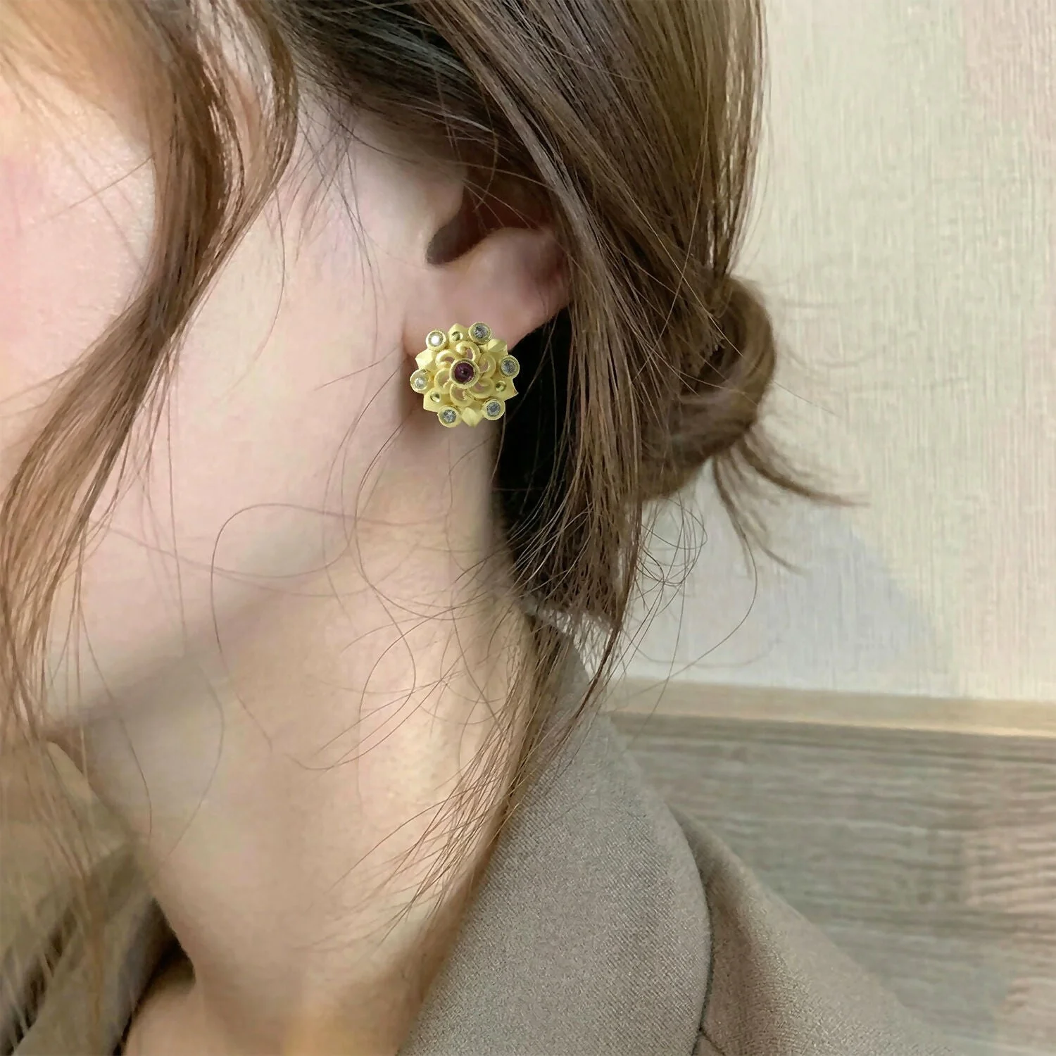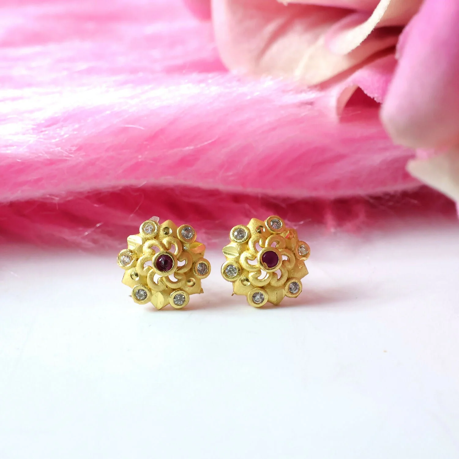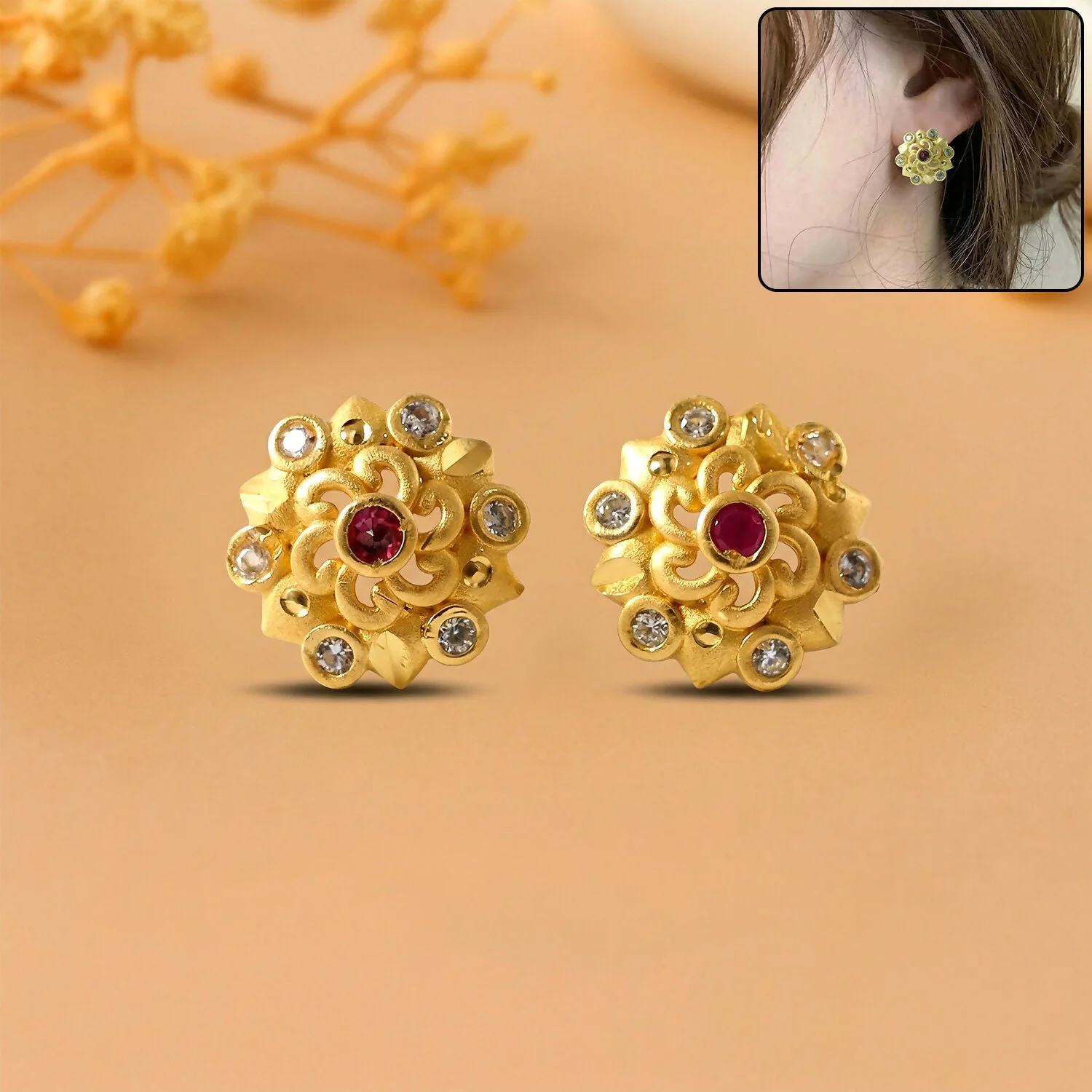 Be the first to review Designer Floral Cluster Gold Stud Earrings with Multi Stones!