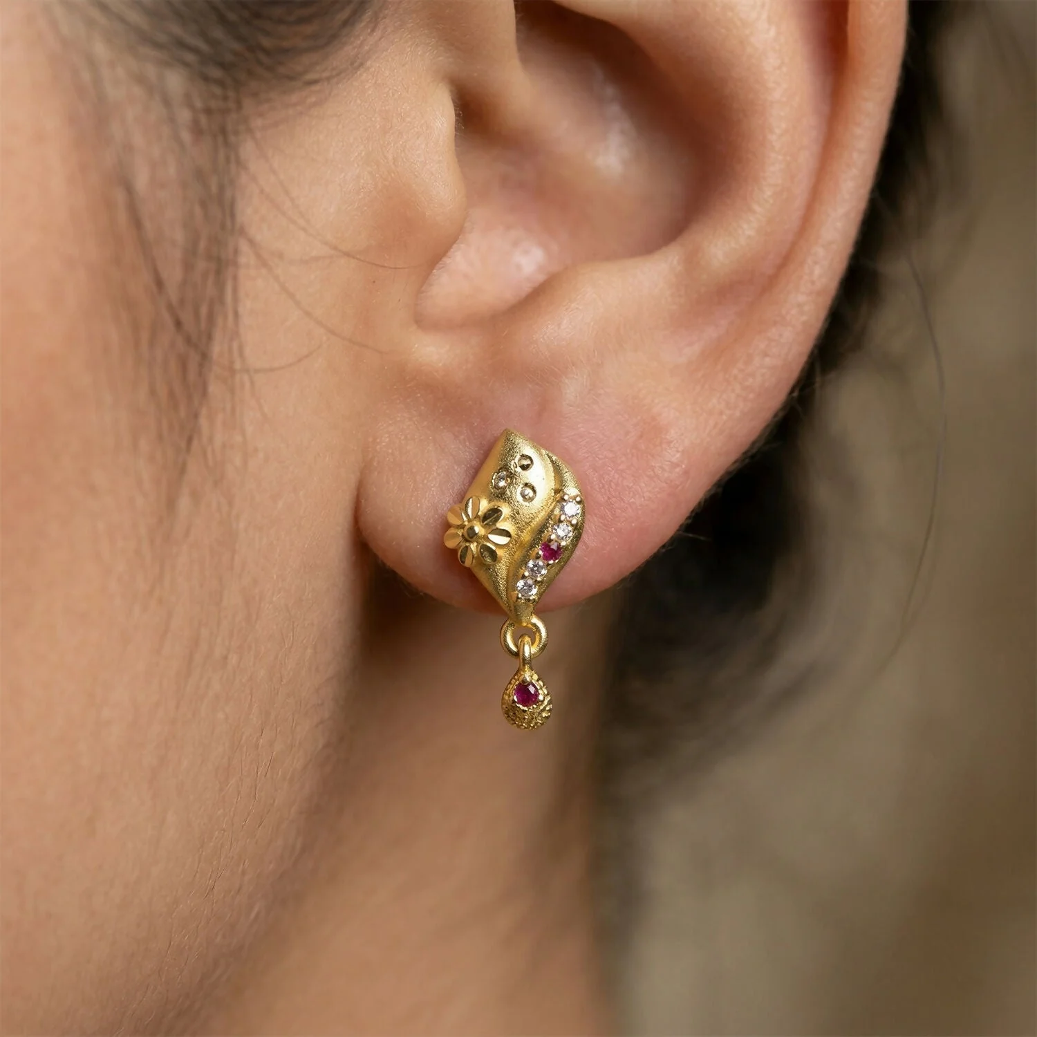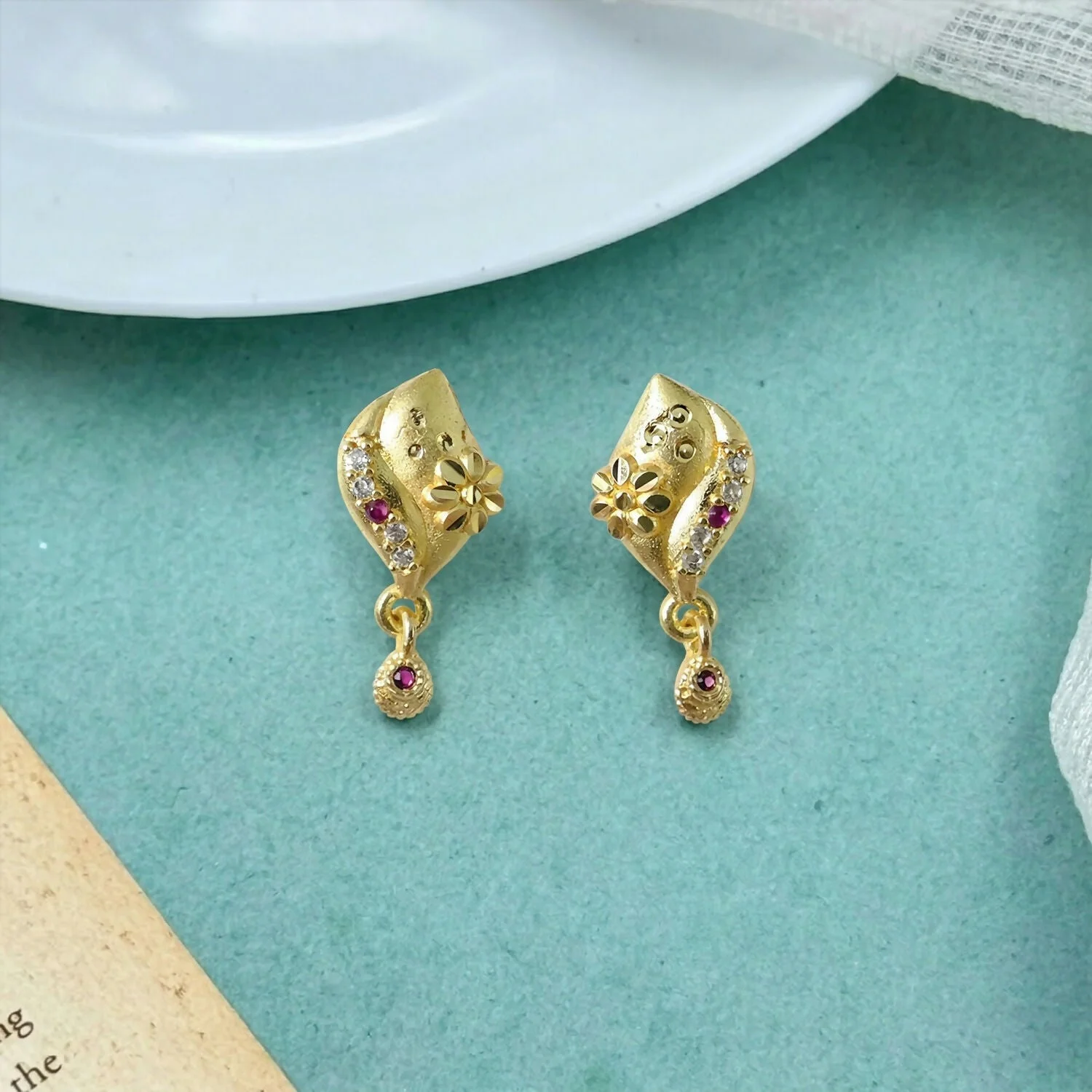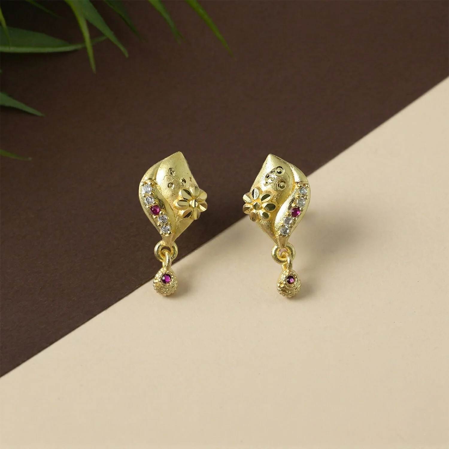Be the first to review Designer Flower Style Gold Plated Stud Drop Earrings for Women!