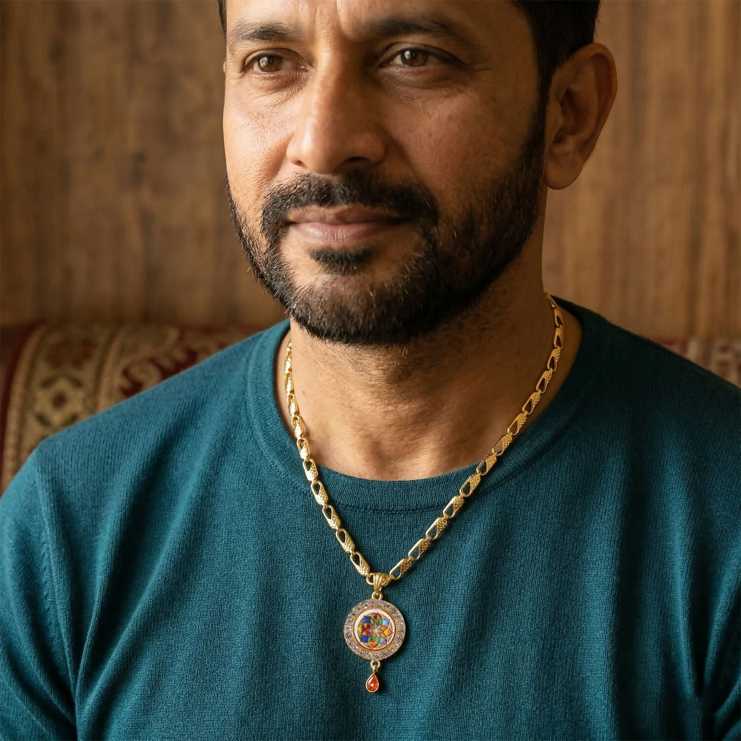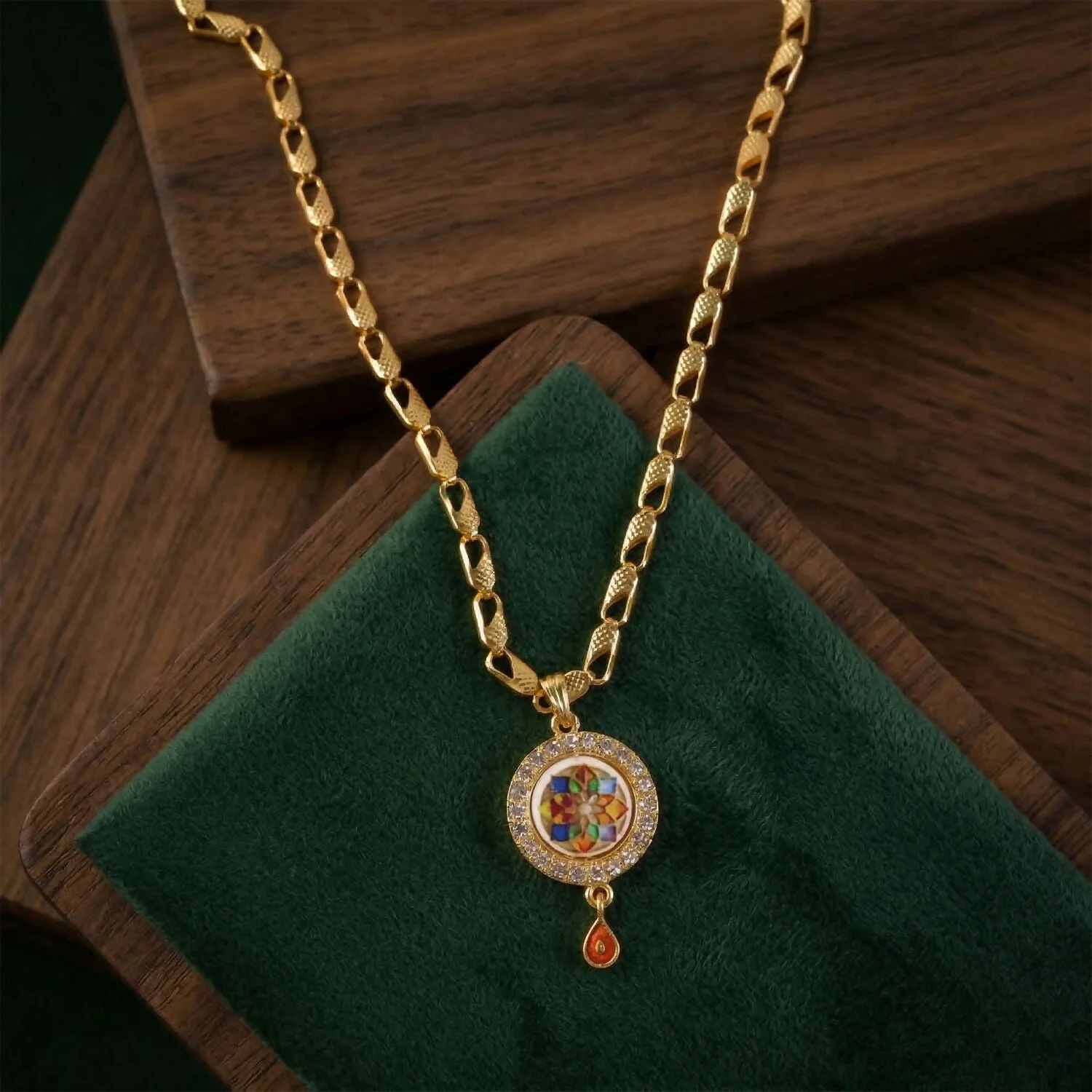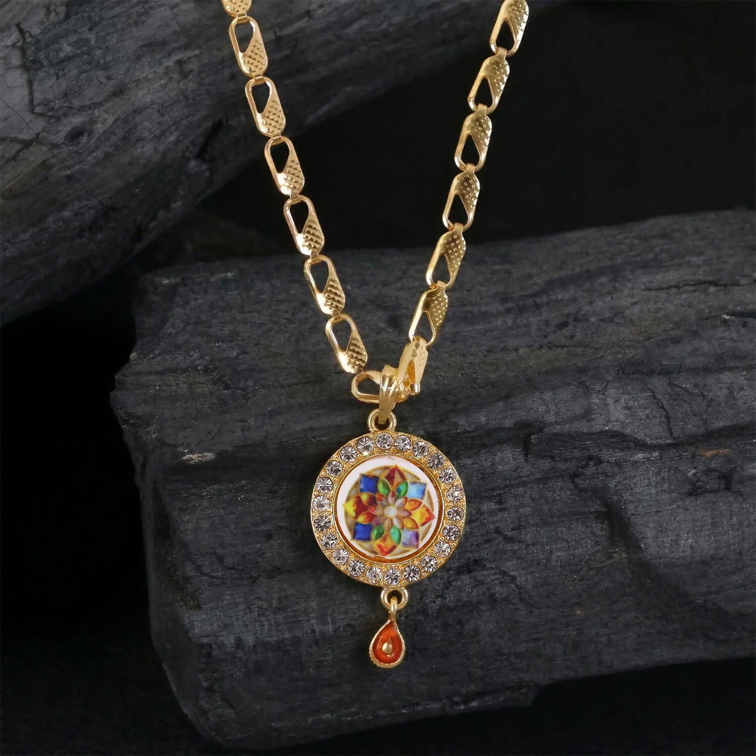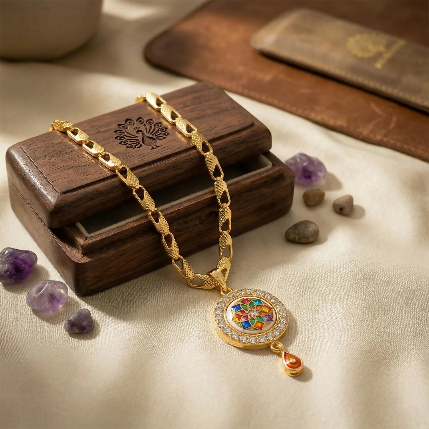 Be the first to review Designer Gold Pendant Necklace with Colorful Stone Mandala!