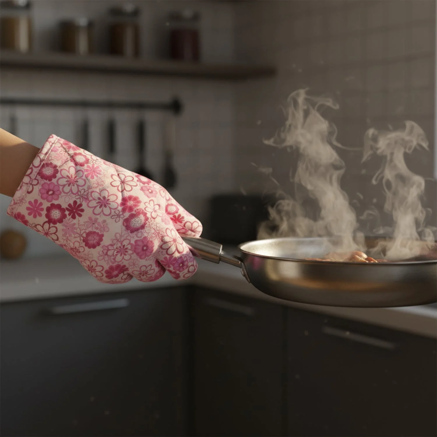 Our kitchen oven hand gloves and pot holder are the biggest in size compared to other in the market. Material and print quality is the available in the market. Go on and enjoy this beautifully created product. Kitchen oven hand gloves and accessories with strikingly exquisite designs. The oven mitts are designed for a non-slip grip, soft touch feel and are flexible for you to grab anything. quality and quick dispatch.Well stitched, high durability.