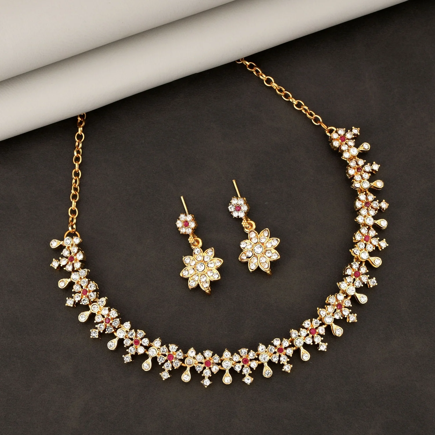 Be the first to review Diamond-Look Floral Choker Necklace Set with Accent Stones!