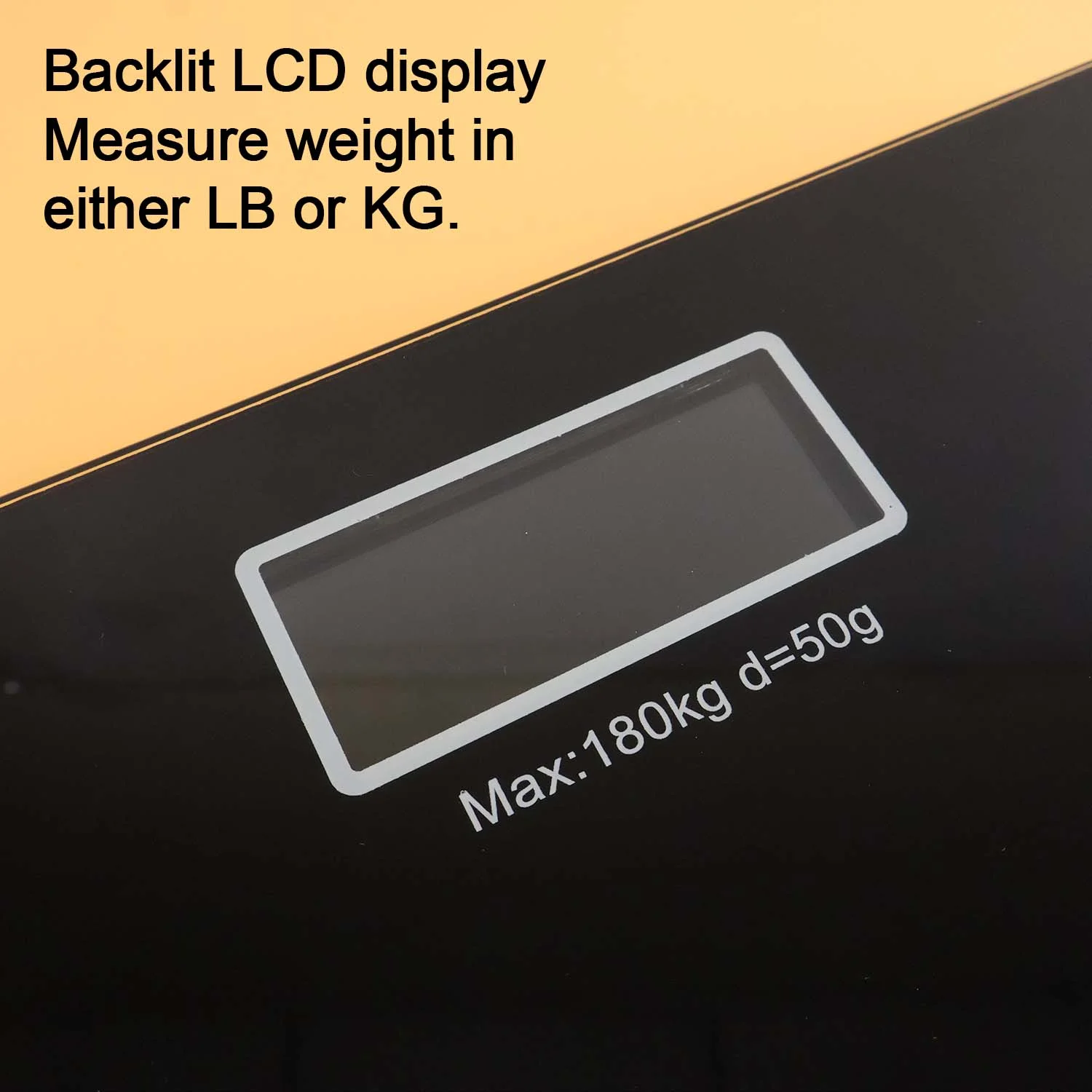 Sturdy tempered glass platform supports up to 180 kg.
