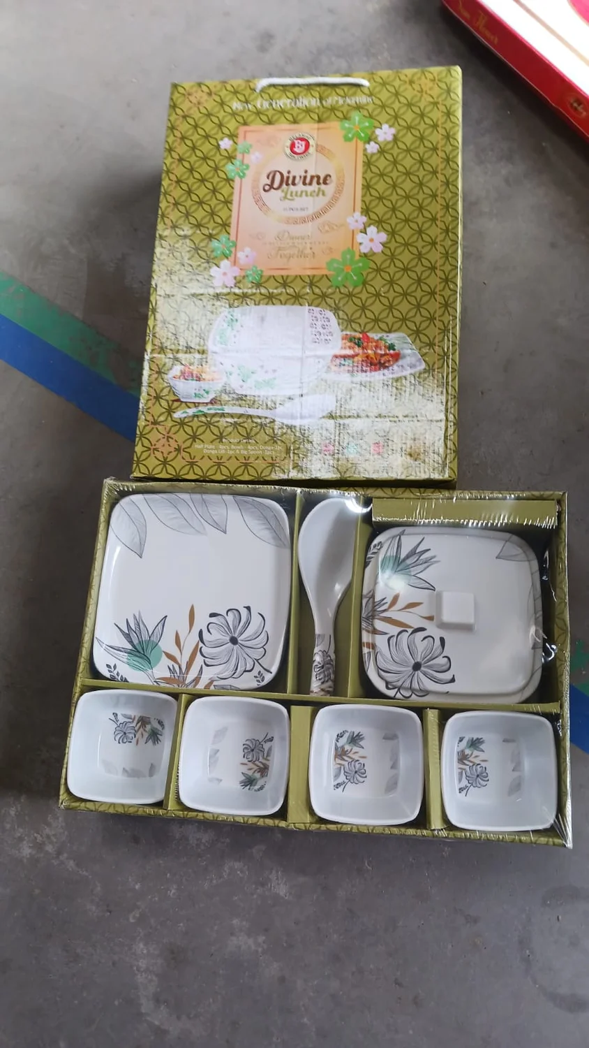 Divine lunch Tableware, Dinner Set, For Serving Food Stuffs And Items Plate 4 Pcs, Bowls 4 Pcs, Donga 1 Pc, Donga Lid 1 Pc, Big Spoon 1 Pc (11 Pcs Set)