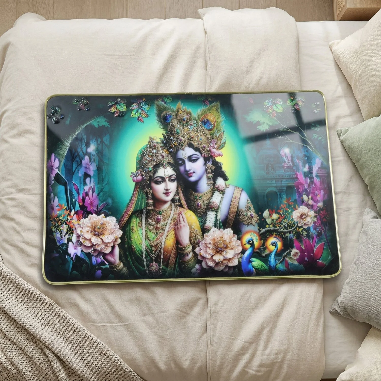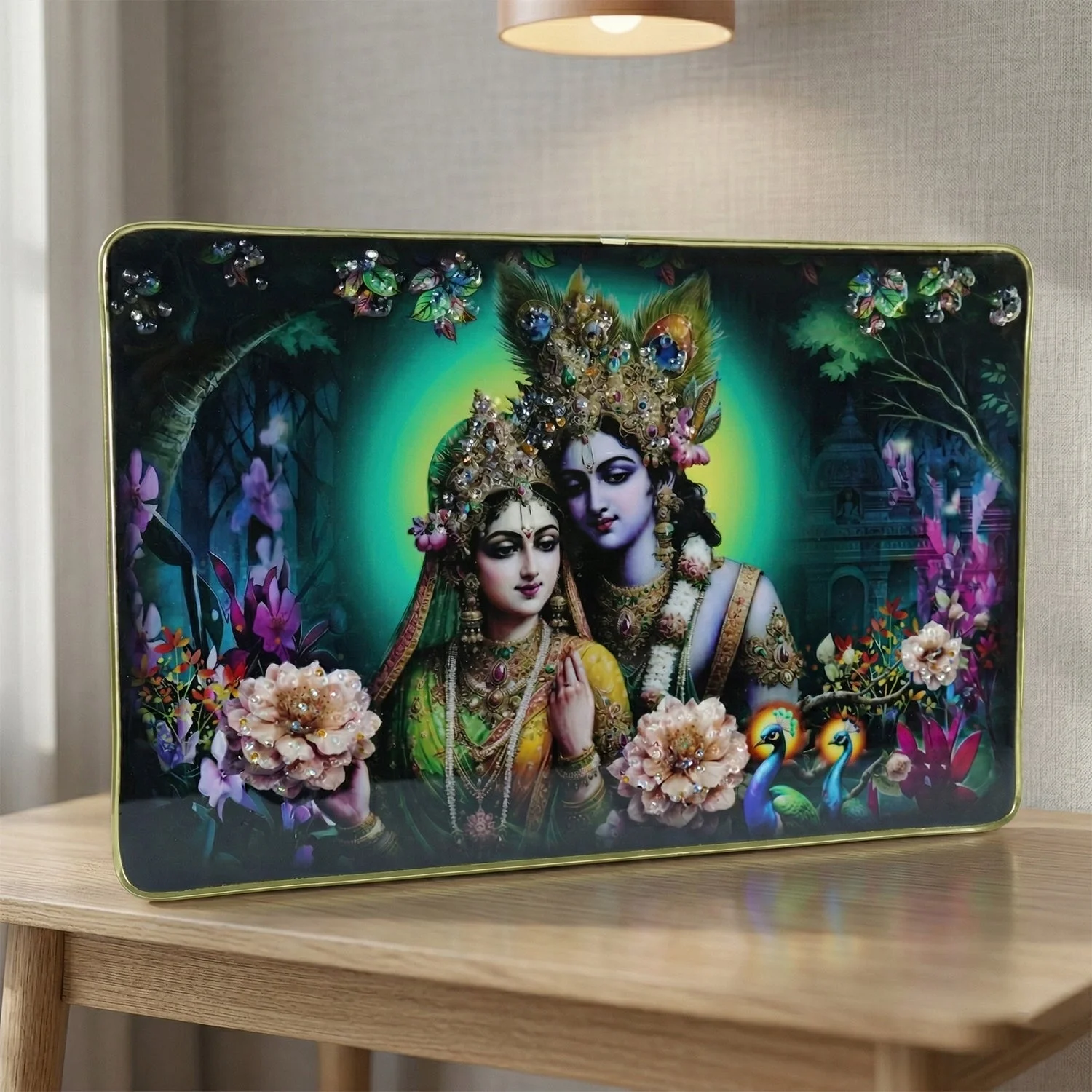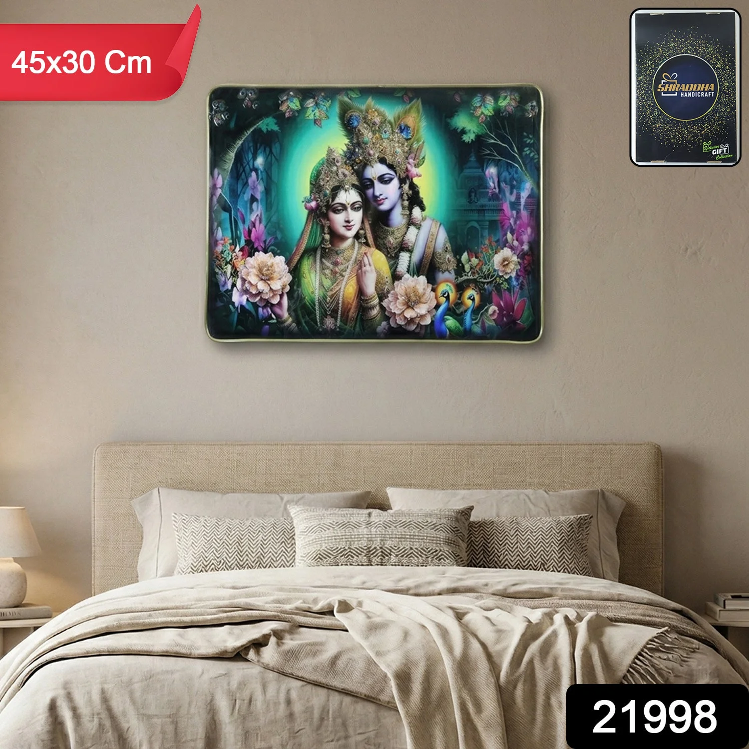Divine Radha Krishna Artistic Wall Frame 45x30 Cm 1 Pc – Premium Spiritual Decorative Panel for Bedroom Living Room Temple Elegant Home Styling