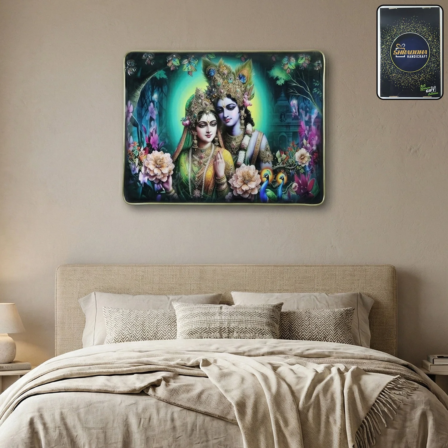 Crafted to blend tradition with style, this Radha Krishna painting frame gift works beautifully as a religious wall hanging or centerpiece. Its intricate design and calming visuals not only elevate your interiors but also create a peaceful environment, making it ideal for gifting or personal decor.