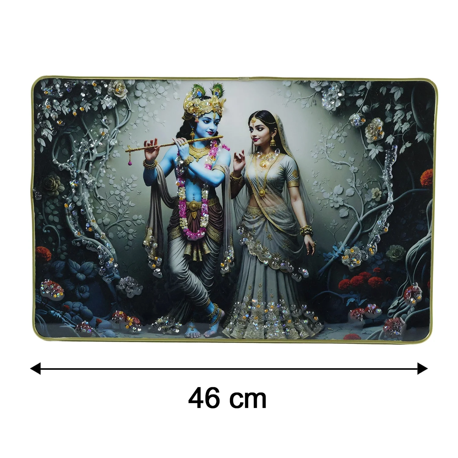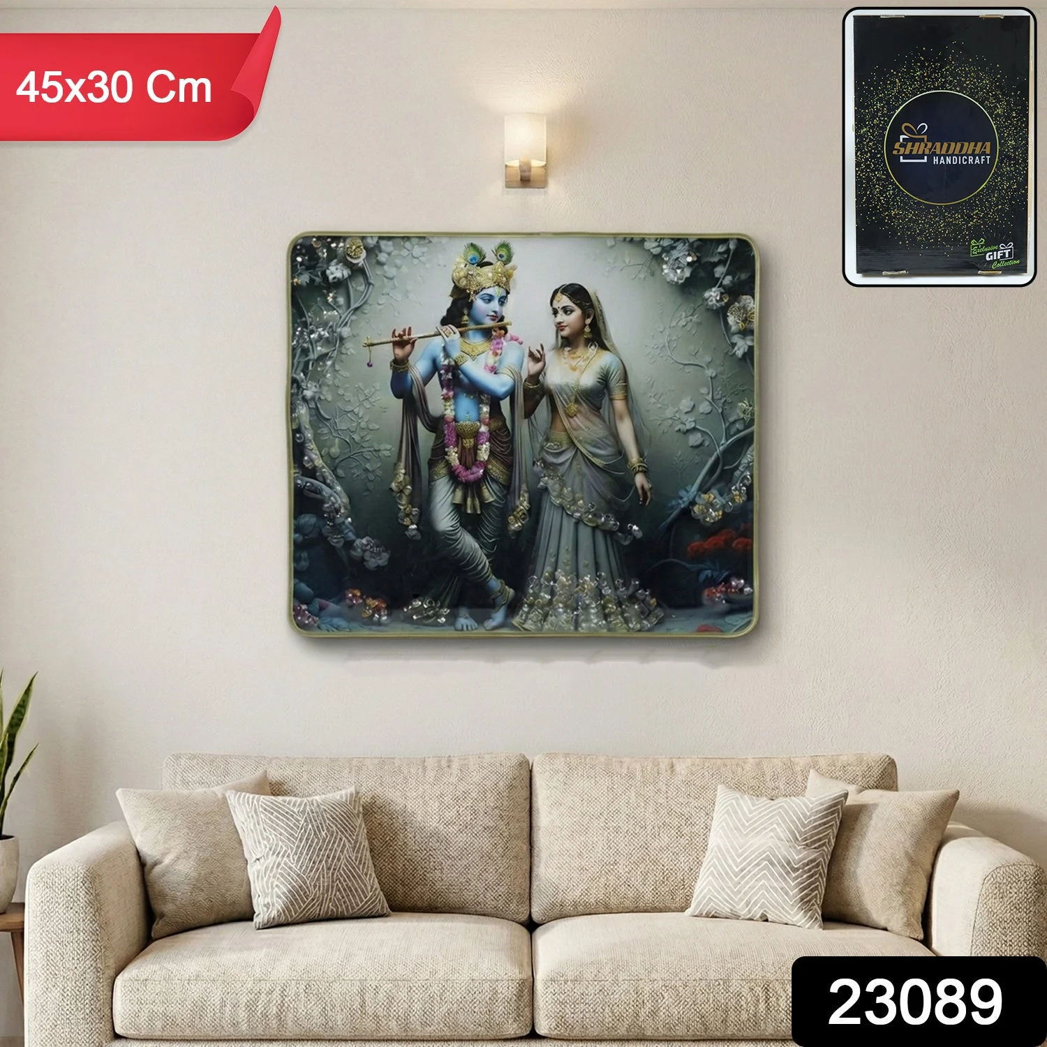 Divine Radha Krishna Flute Art Wall Frame 45x30 Cm 1 Pc – Premium Spiritual Decorative Panel with Elegant Detailing for Living Room Bedroom Temple Wall Décor