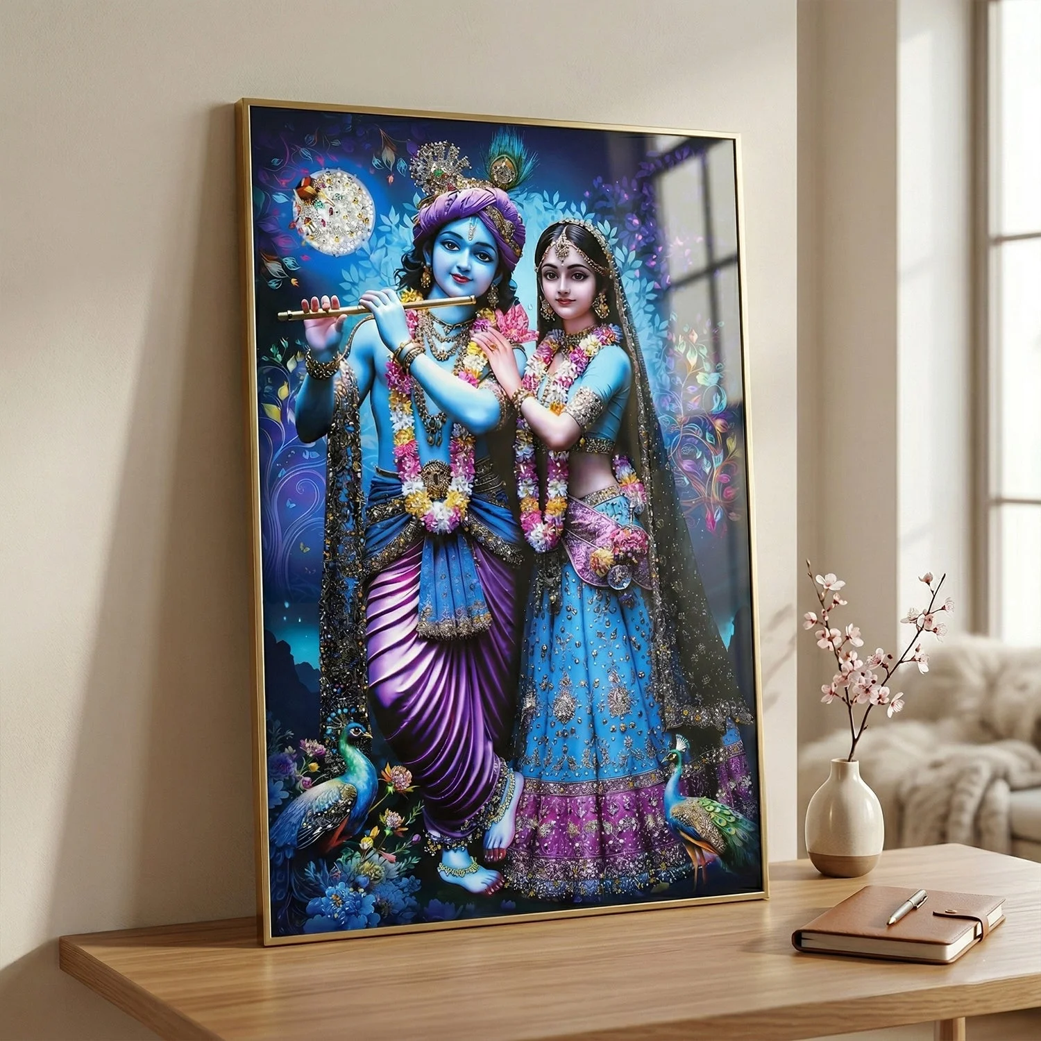 radha krishna full moon wall frame, divine radha krishna wall art, radha krishna artistic painting, spiritual full moon wall decor, hindu god wall painting frame, radha krishna photo frame, religious wall art painting, krishna radha framed artwork, decorative wall panel for home, temple wall decor painting, living room spiritual wall art, bedroom religious wall decor, office hindu wall art, devotional wall frame, indian mythology wall decor, radha krishna gift item, puja room wall painting, premium decorative wall frame, elegant home decor wall art