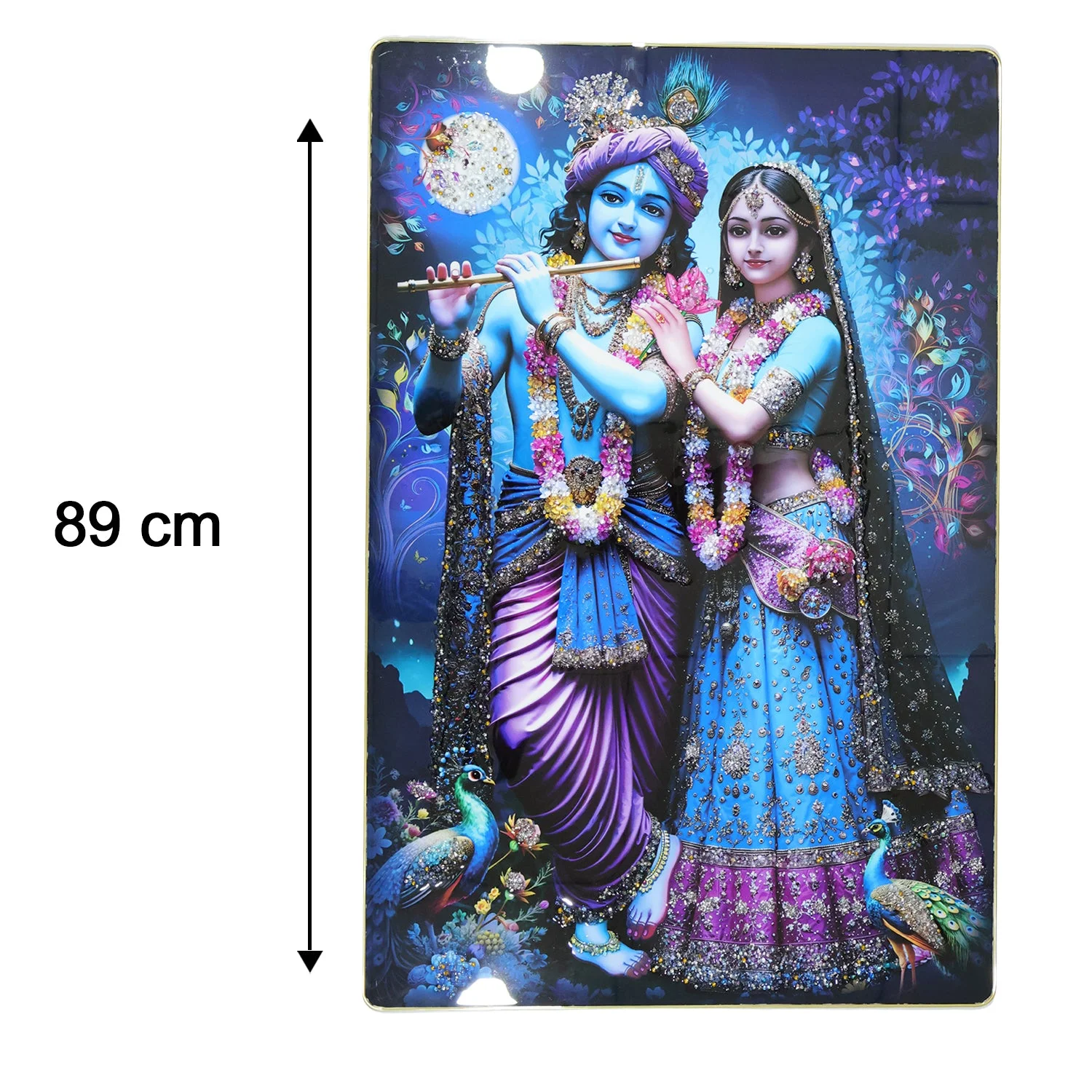 Divine Radha Krishna Full Moon Artistic Wall Frame 89x58 Cm 1 Pc – Premium Large Spiritual Decorative Wall Painting for Living Room, Bedroom, Office & Temple Decor