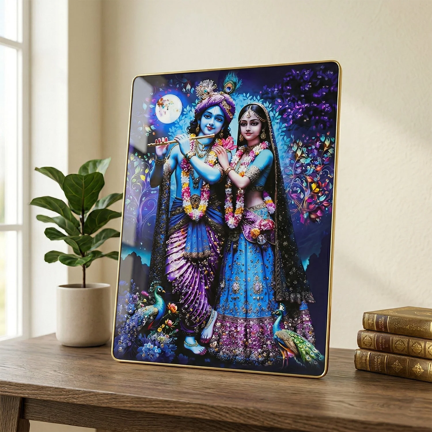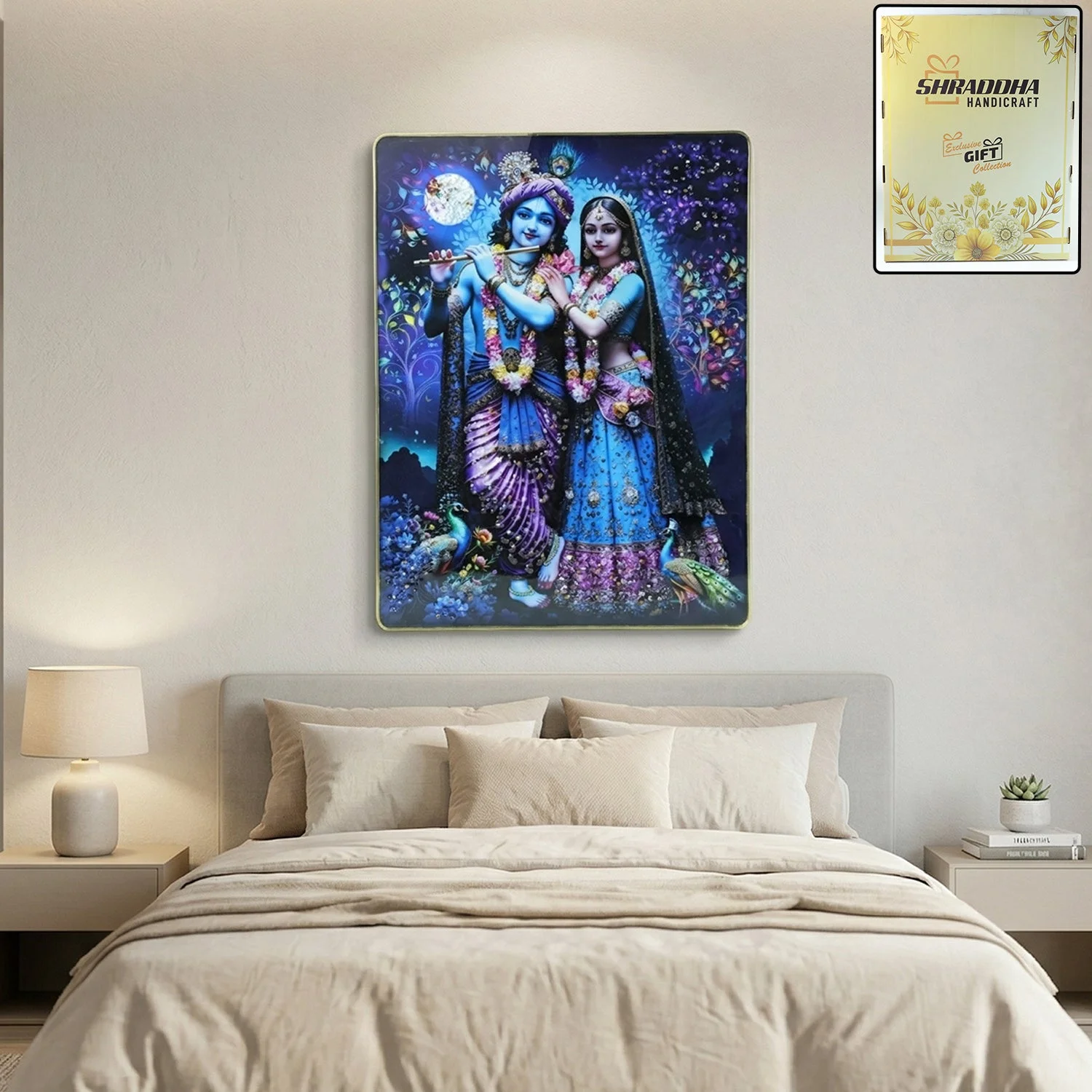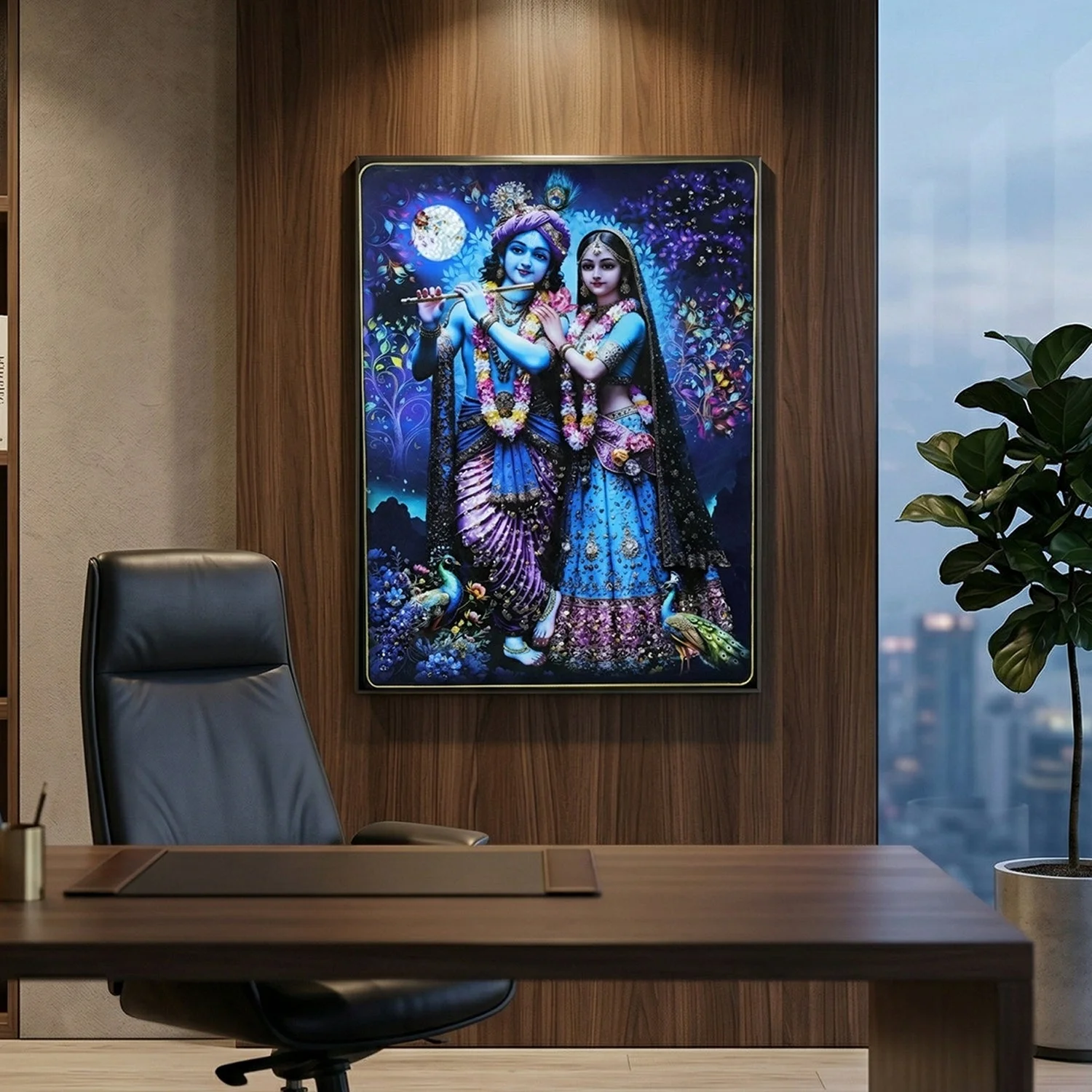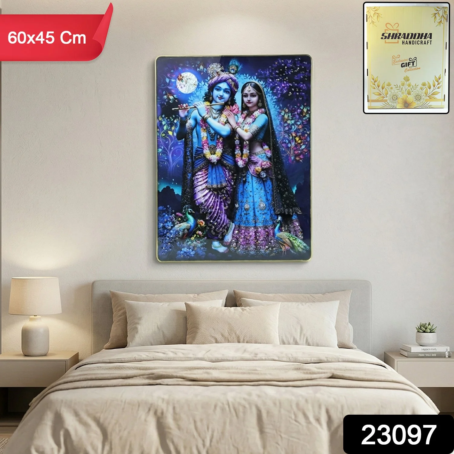Divine Radha Krishna Moonlight Artistic Wall Frame 60x45 Cm 1 Pc – Premium Spiritual Decorative Painting for Bedroom, Living Room, Temple & Office Wall Decor
