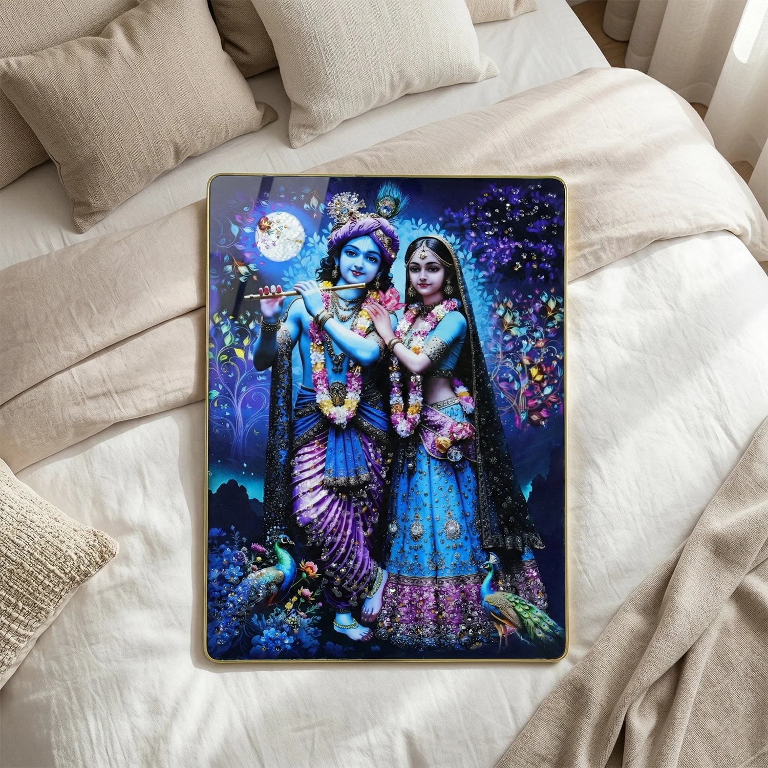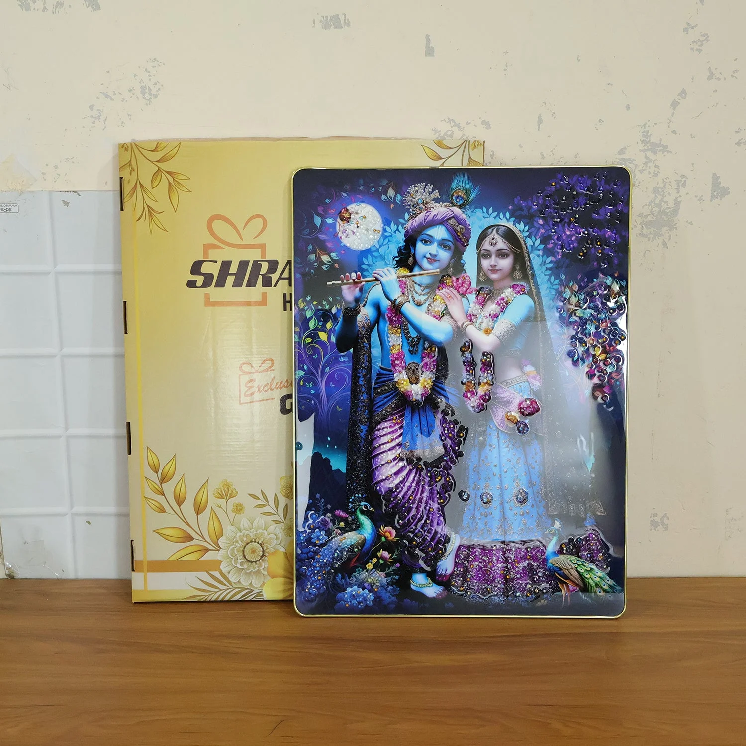 Enhance your interiors with this mesmerizing Radha Krishna wall frame featuring a serene moonlit artistic theme. The beautifully detailed artwork captures divine love, peace, and spirituality, making it a perfect addition to any sacred or living space. Designed with vibrant colors and intricate patterns, this decorative piece instantly elevates the ambiance of your room. Its premium finish gives it a rich and elegant appearance while ensuring durability. Whether placed in a bedroom, living room, or temple area, it creates a calming and devotional atmosphere.