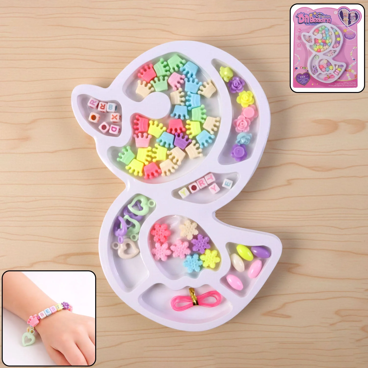 This DIY fashion beading jewellery making kit is a fun and creative activity set designed especially for kids who love crafts and accessories. The set includes a colorful assortment of crown-shaped beads, flower beads, alphabet beads, decorative charms, and elastic thread, all neatly arranged in a uniquely shaped tray for easy access and organization. Children can mix and match beads to create personalized bracelets, necklaces, and decorative accessories while developing creativity, imagination, and fine motor skills. Perfect for playtime, learning activities, and gifting, this beading kit encourages hands-on creativity in an engaging and enjoyable way.
