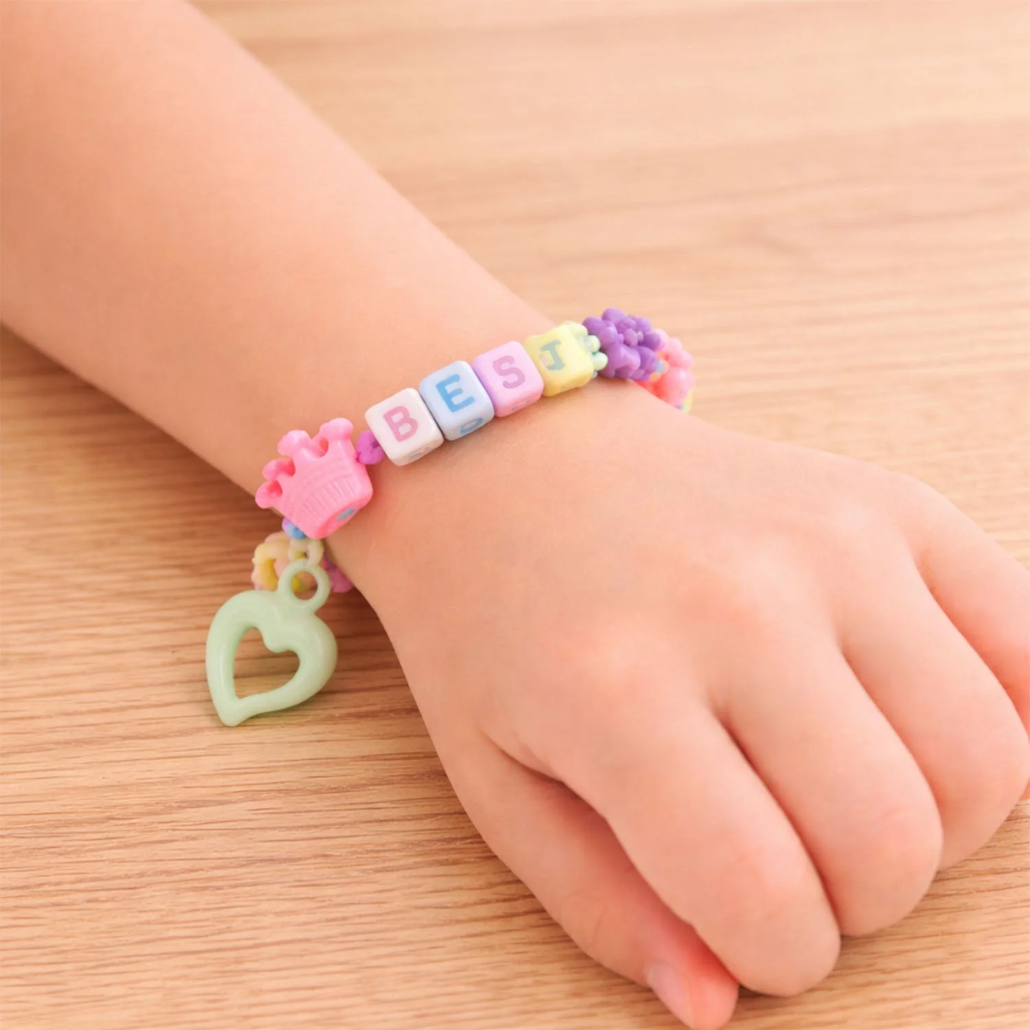 DIY fashion beading kit, jewellery making kit for kids, alphabet beads set, crown beads for crafts, flower beads for jewellery, elastic thread for bracelets, bracelet making kit, necklace making kit, creative craft set for girls, kids jewellery craft kit, DIY bead crafting set, fun DIY accessory kit, children's bracelet and necklace kit, arts and crafts set for kids, personalised jewellery making kit