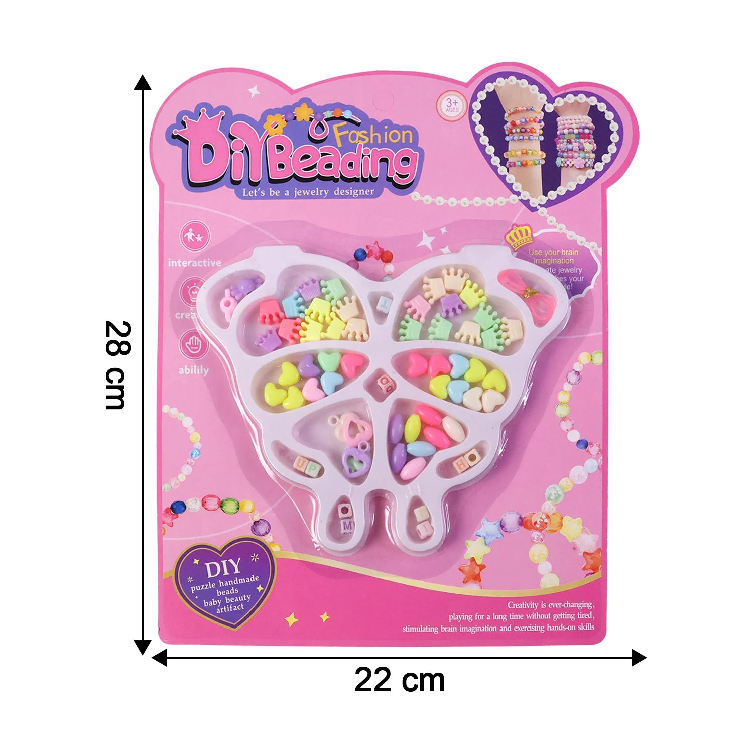 DIY fashion beading kit, jewellery making kit for kids, butterfly organizer tray, crown beads for crafts, heart beads for jewellery, alphabet beads set, elastic thread for bracelets, bracelet making kit, necklace making kit, creative craft set for girls, kids jewellery craft kit, DIY bead crafting set, fun DIY accessory kit, children's bracelet and necklace kit