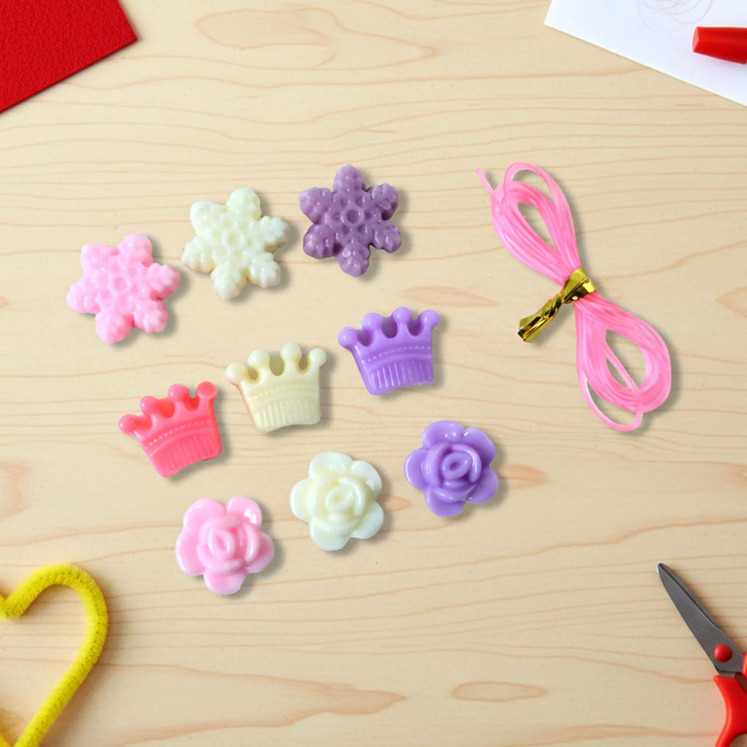 Includes flower beads, crown beads, alphabet beads & decorative charms