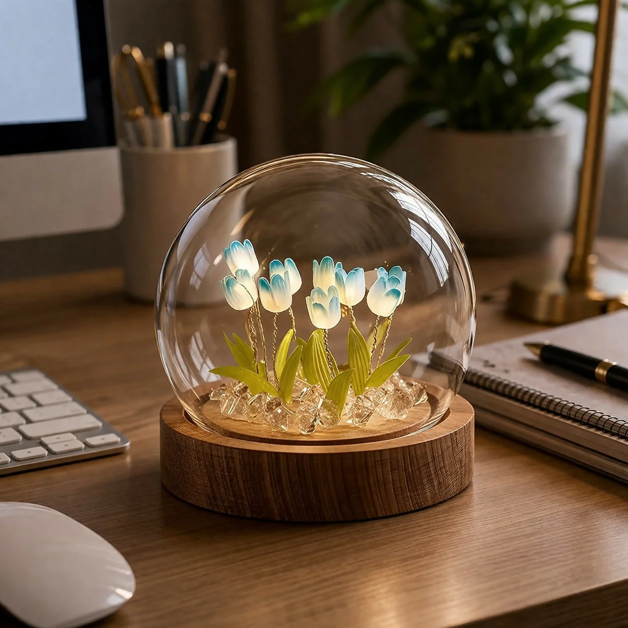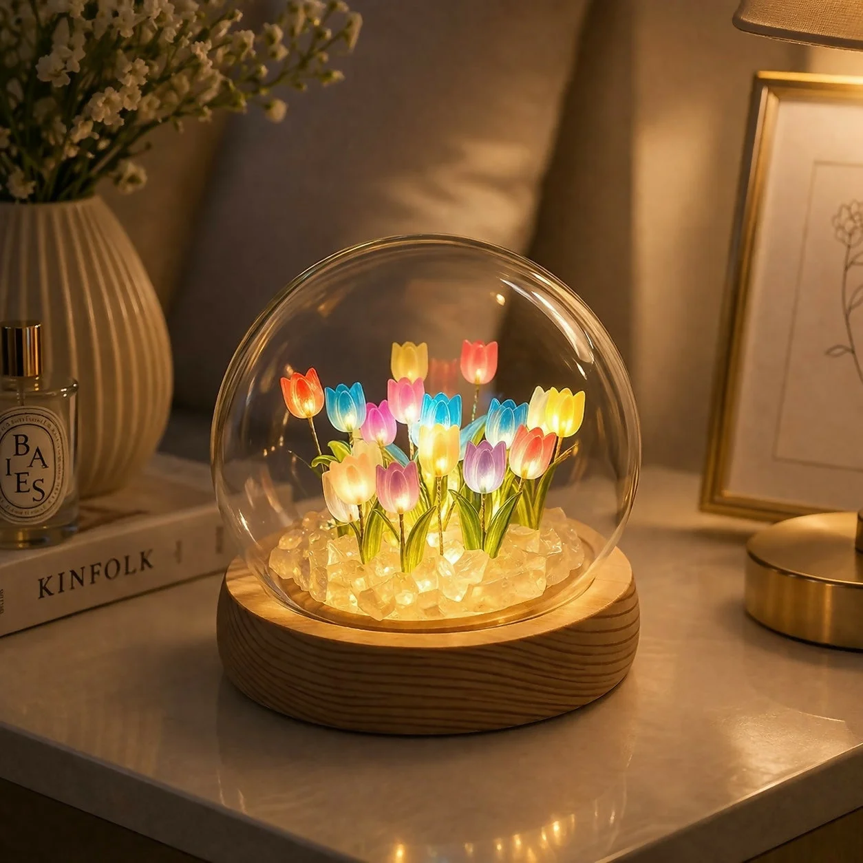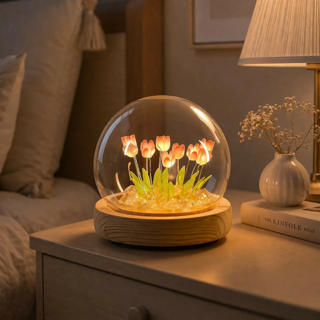 diy tulip lamp, night light kit, led flower lamp, glass dome lamp, handmade decor lamp, bedside night light, decorative table lamp, aesthetic lamp, home decor lighting, gift lamp