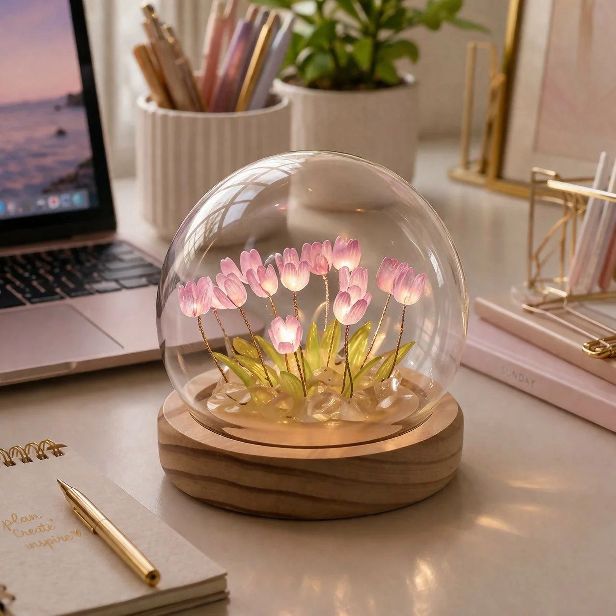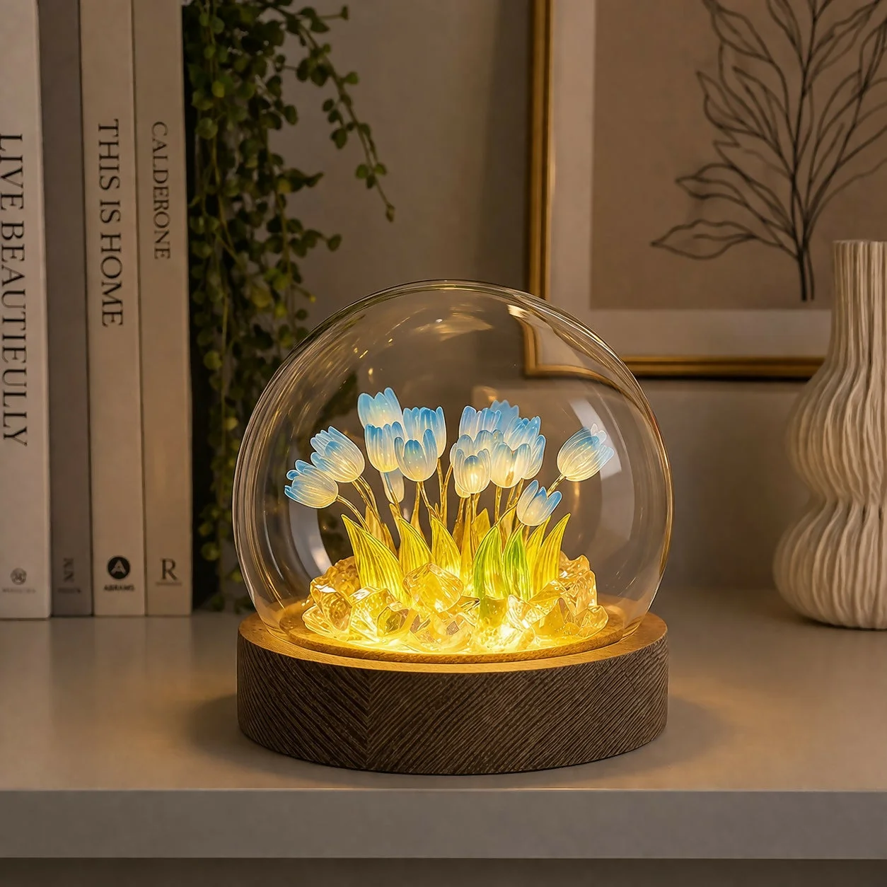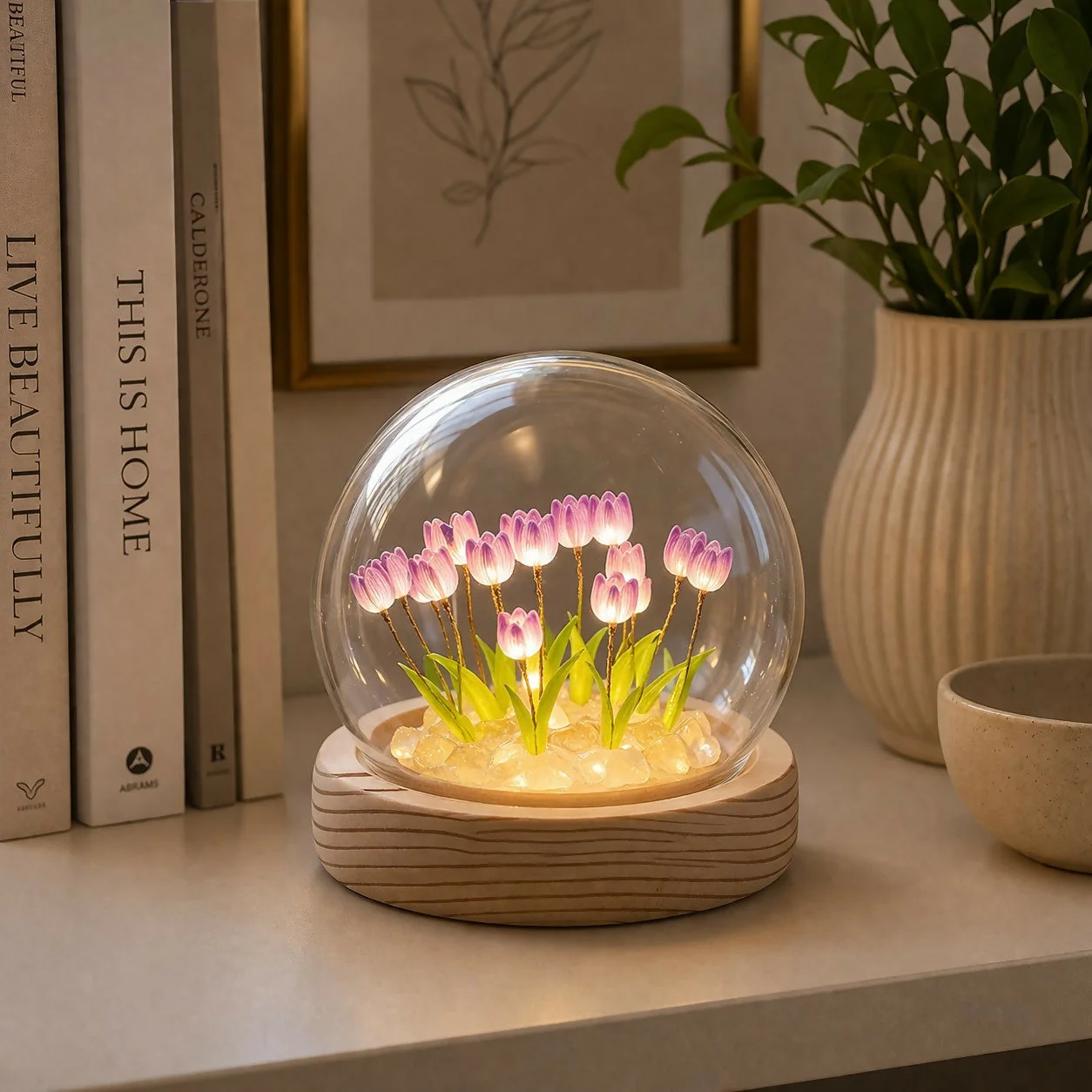 diy tulip lamp, night light kit, led flower lamp, glass dome lamp, handmade decor lamp, bedside night light, decorative table lamp, aesthetic lamp, home decor lighting, gift lamp