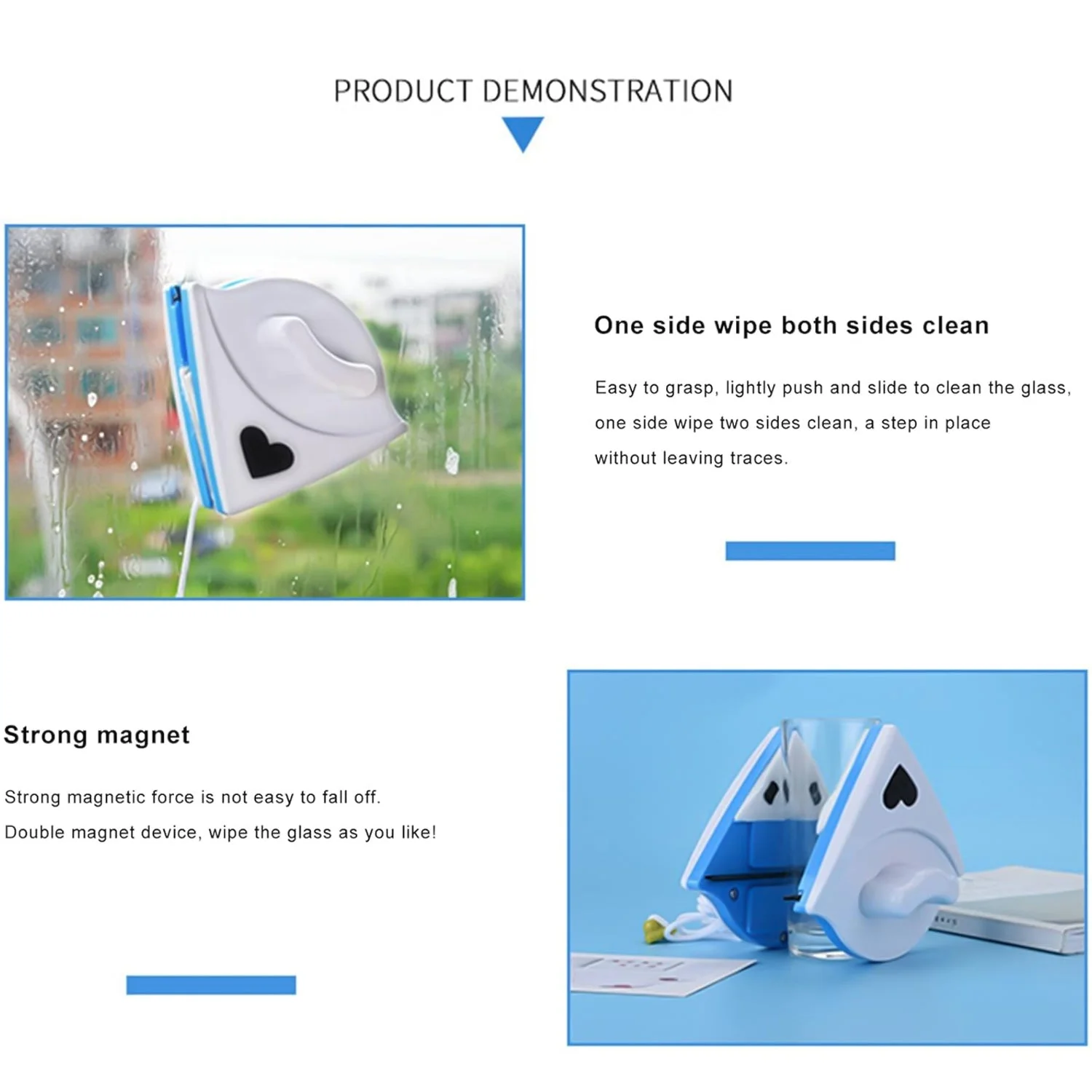 4976 Magnetic Window Cleaner Double-Side, double face glass cleaner Window Squeegee, Magnetic Window Washing Equipment.