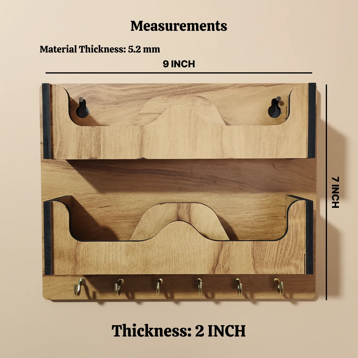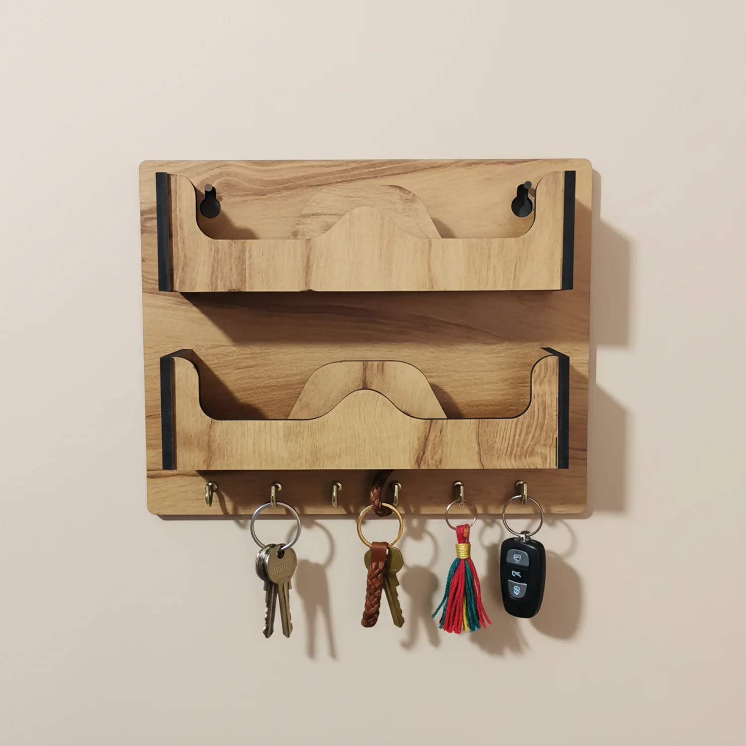 With a modern minimalist look and warm wooden texture, this organizer blends seamlessly with contemporary and traditional interiors alike. Easy wall mounting ensures a clutter-free space and quick access to your daily essentials.
