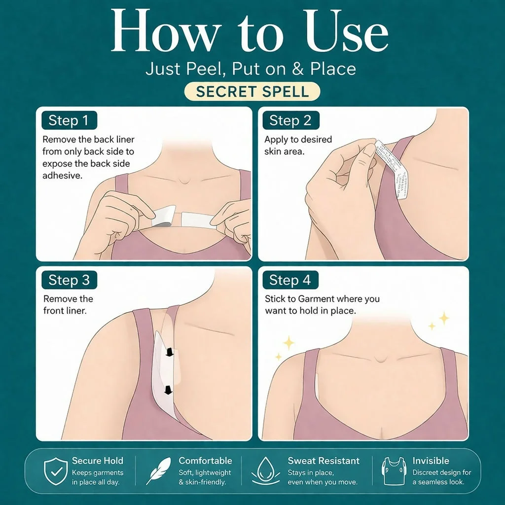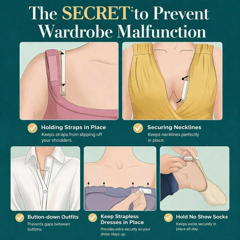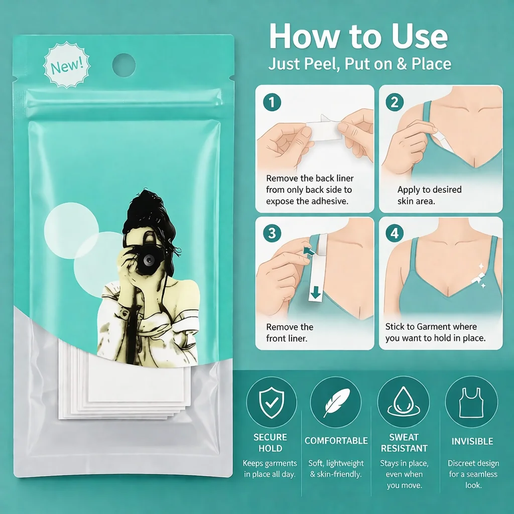 Keep your outfits perfectly in place with these double-sided clothing tape strips. Designed for both fabric and skin, these transparent adhesive strips help prevent wardrobe malfunctions by securing straps, necklines, and hems effortlessly. The skin-friendly adhesive ensures comfort for all-day wear, while the strong hold keeps your clothing neat and in position. Ideal for dresses, shirts, and accessories, these strips are discreet, easy to use, and leave no visible marks, making them a must-have for everyday styling and special occasions.