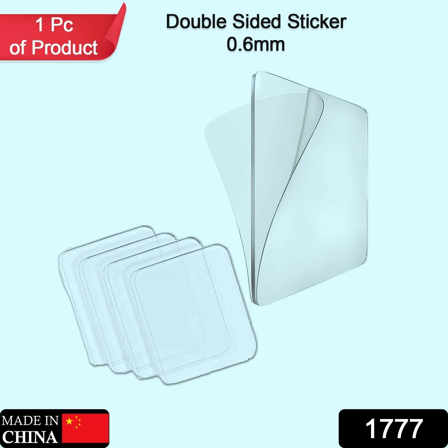 1777 New Double Side Tape Sticker Strong Waterproof Wall Indoor Nano Adhesive No Trace Gel Clear Industrial Multipurpose Removable Use for Bedroom, Home, Kitchen, Hotel (0.6mmx1pc)