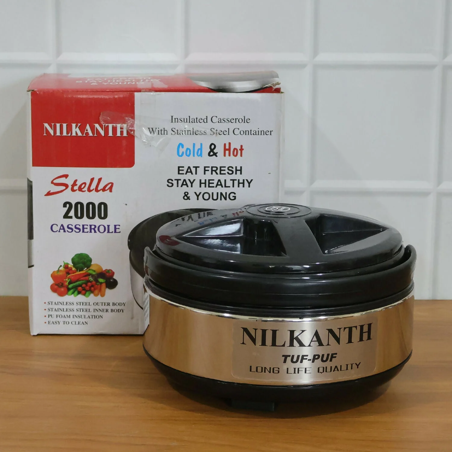 Keep your food fresh, hot, and delicious with the Nilkanth Stella 2000 Insulated Casserole. Designed with a high-quality stainless steel inner container and strong insulated outer body, this casserole helps maintain the temperature of food for a longer time. It is perfect for storing roti, rice, biryani, curry, and other meals while keeping them hot or cold.