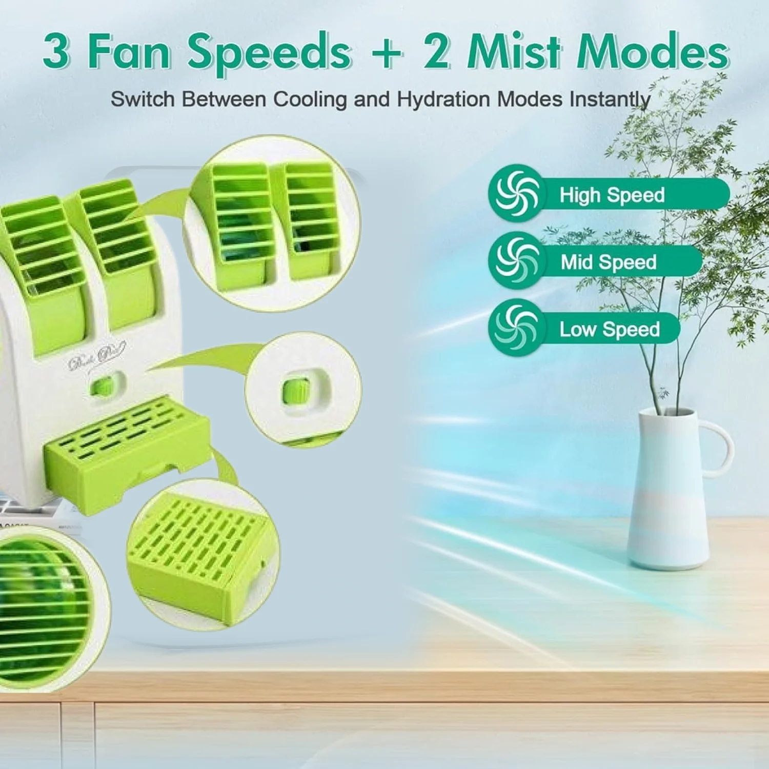 Mini Fan: works as an air conditioner as well as a humidifier.
