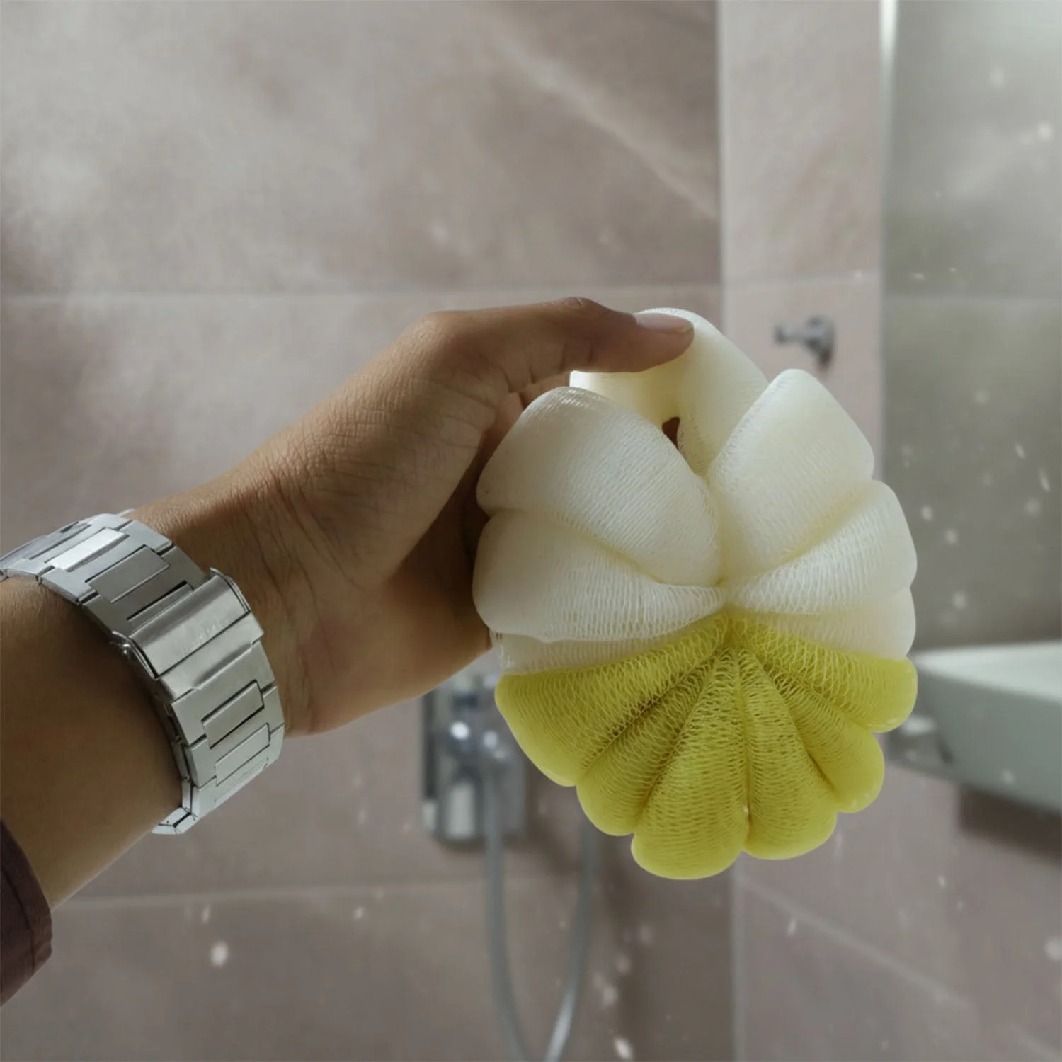 This soft mesh bath loofah is designed to enhance your daily bathing routine by providing gentle yet effective cleansing. Its layered mesh structure helps create a rich lather with minimal soap, allowing thorough cleansing while being soft on the skin. The rounded, easy-to-hold design makes it comfortable to use during showers or baths, helping remove dirt, oil, and dead skin buildup. Suitable for regular use, this loofah supports a refreshing and revitalizing bathing experience for both men and women.