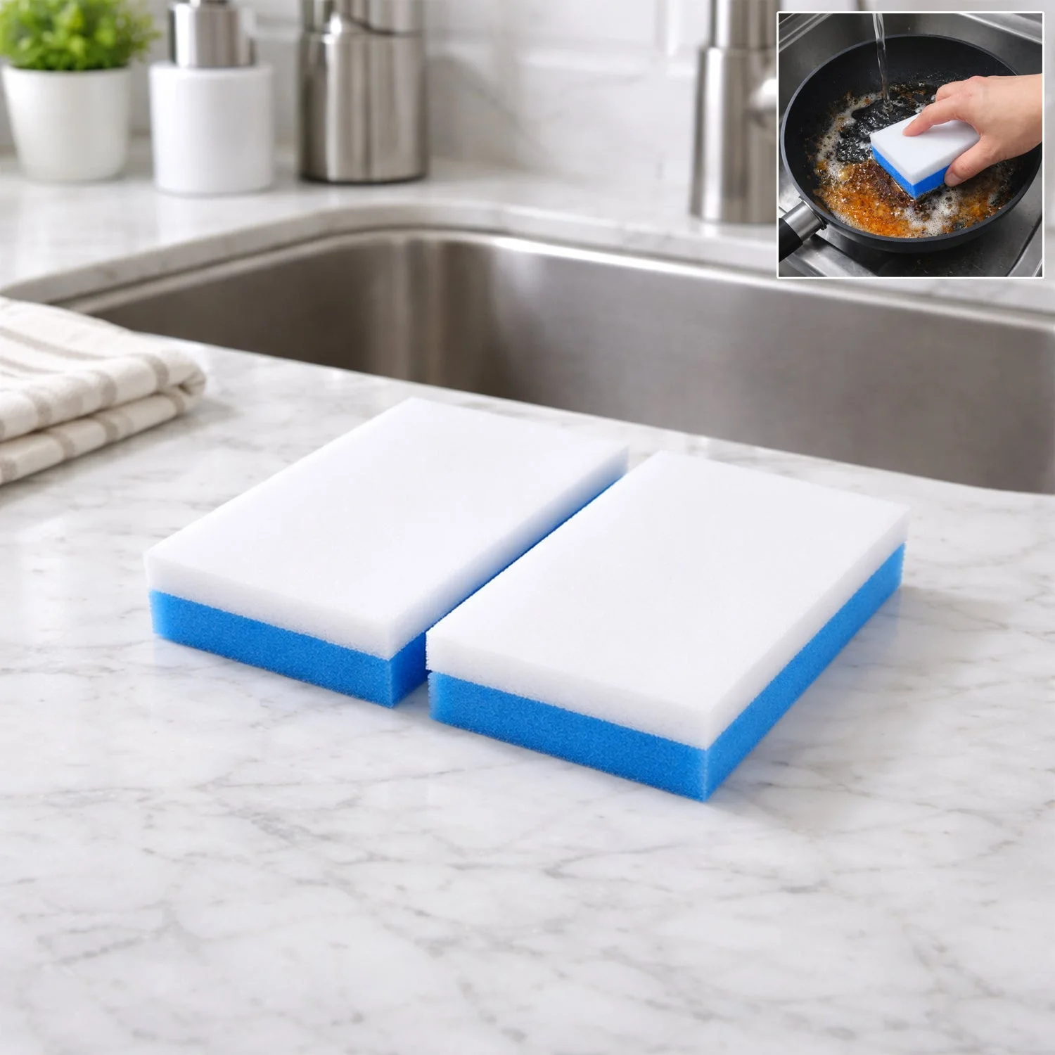 Dual Layer Cleaning Sponge Eraser Pads for Kitchen Utensils, Cookware, Sink and Surface Cleaning – Multipurpose Scrub Pads for Daily Home Use (2 Pc)