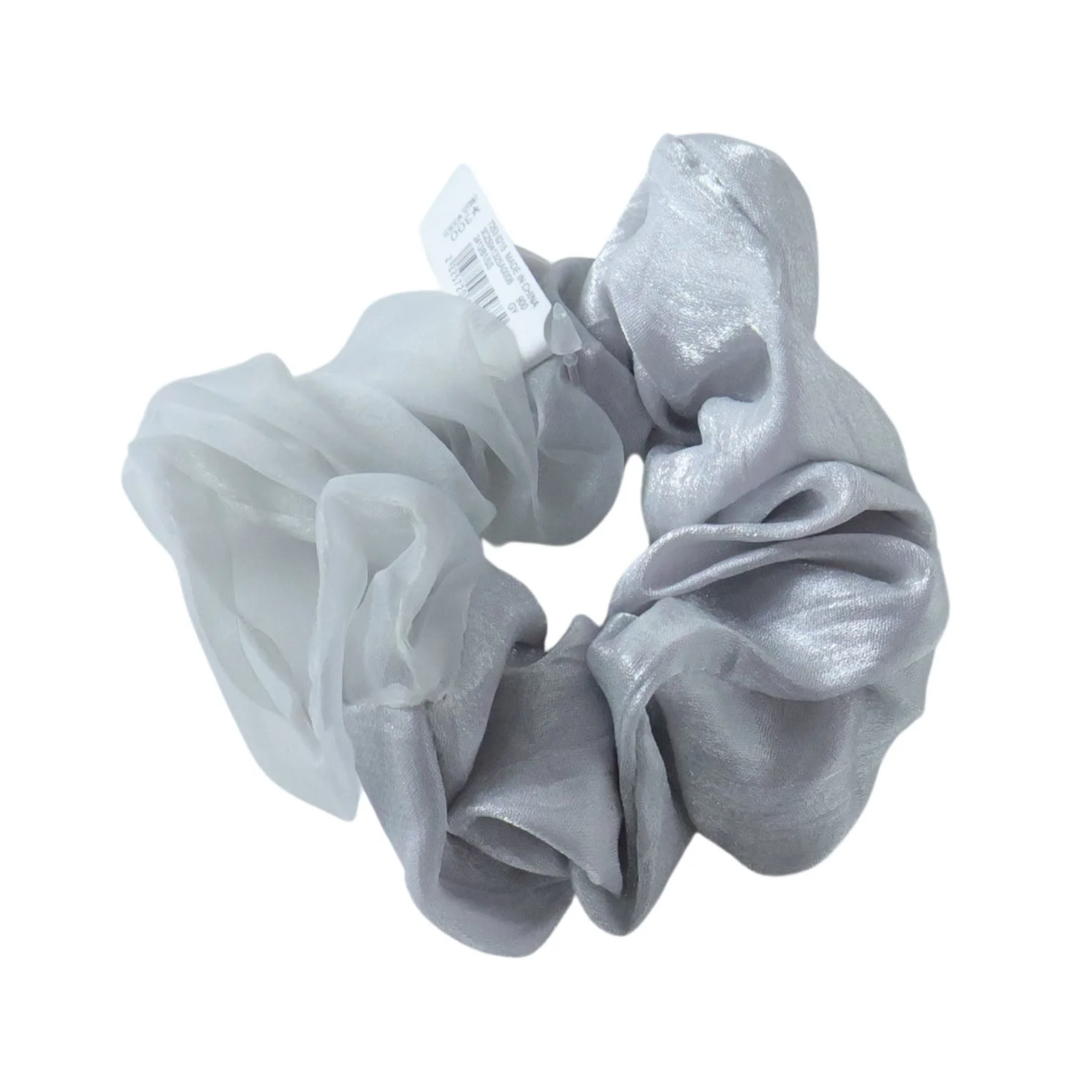 dual-tone satin hair scrunchie, mesh fabric hair scrunchie, soft stretchable hair tie, hair scrunchie for women, hair scrunchie for girls, ponytail hair accessory, bun styling hair tie, elegant daily hair management, lightweight hair scrunchie, fashionable hair tie, stylish hair accessory for girls, satin and mesh hair band, comfortable stretch hair scrunchie, casual hair styling scrunchie, versatile hair tie for daily wear