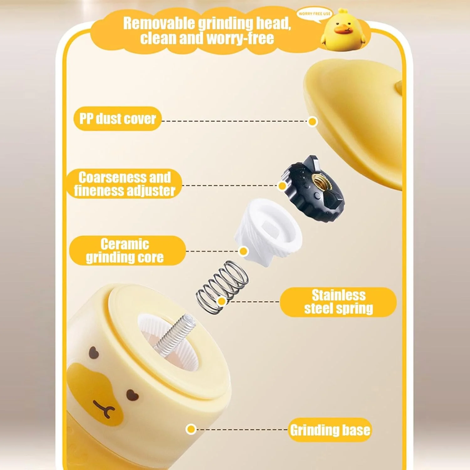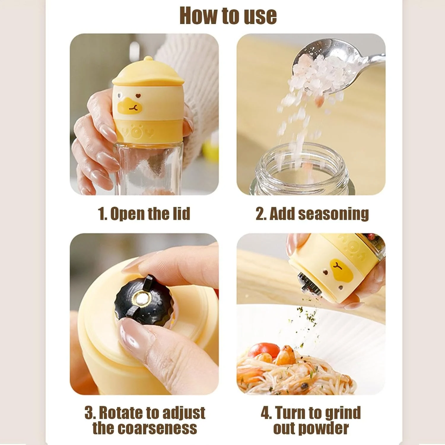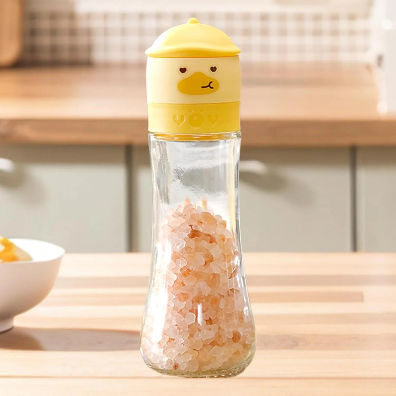 Cartoon Duck Head Glass Spice Grinder – Adjustable Pepper, Salt, or Herb Mill with Cute Design and Ceramic Mechanism