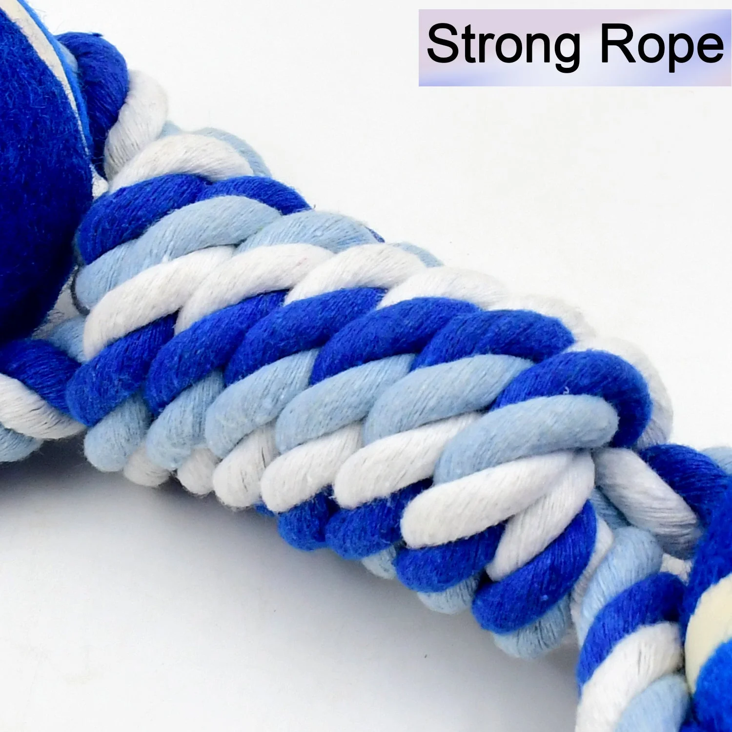 - Our dog ball toy with rope is made of high-quality cotton rope and balls. The middle of the toy is woven into a solid knot with cotton rope. It is safe and tough enough to resist the dog's high-strength chew and will not break easily.