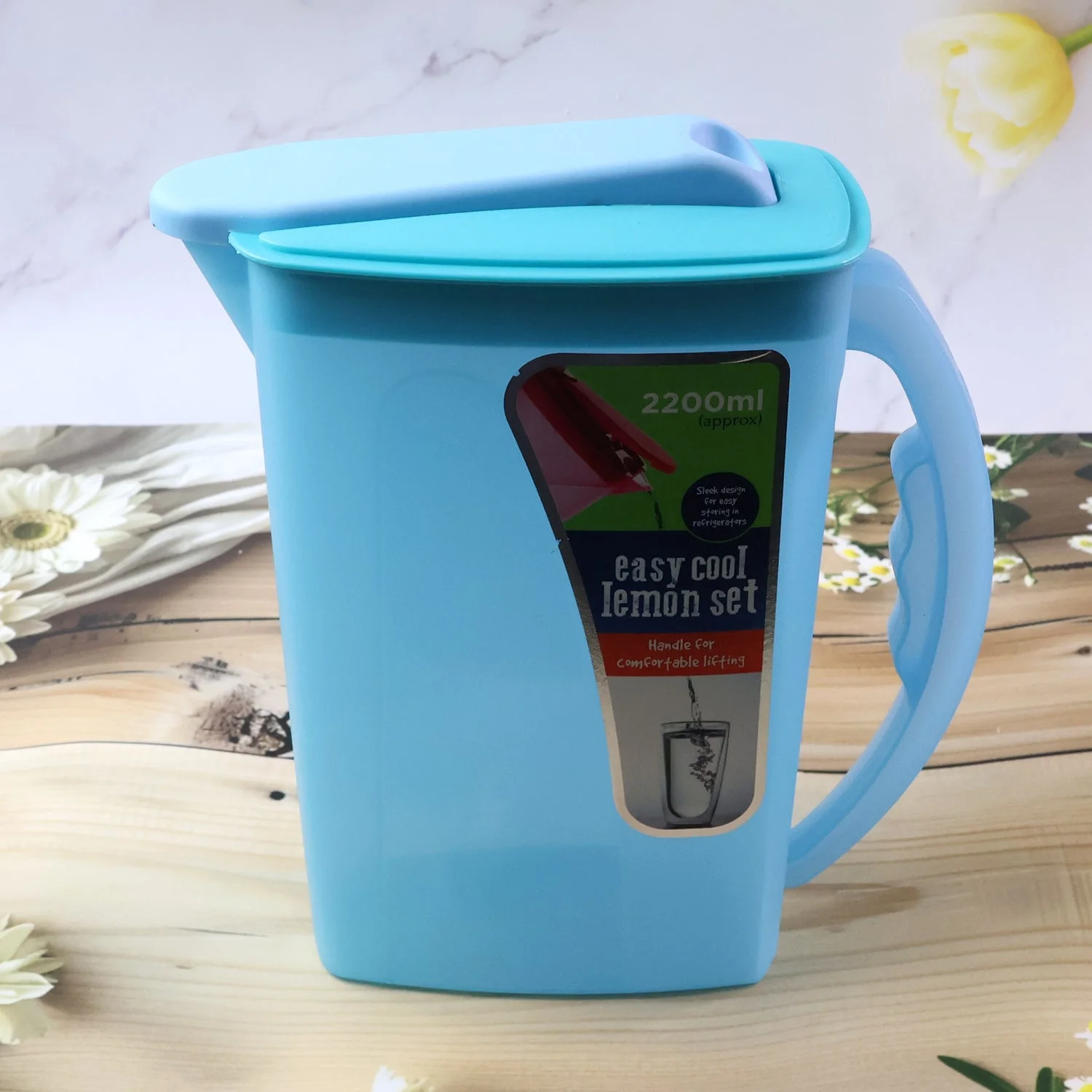 easy cool lemon water jug, water jug with lid and handle, lemon set water jug, plastic water jug, multipurpose beverage jug, kitchen water jug, home water serving jug, drinking water jug, juice serving jug, cold beverage jug, refrigerator water jug, portable water jug, household water container