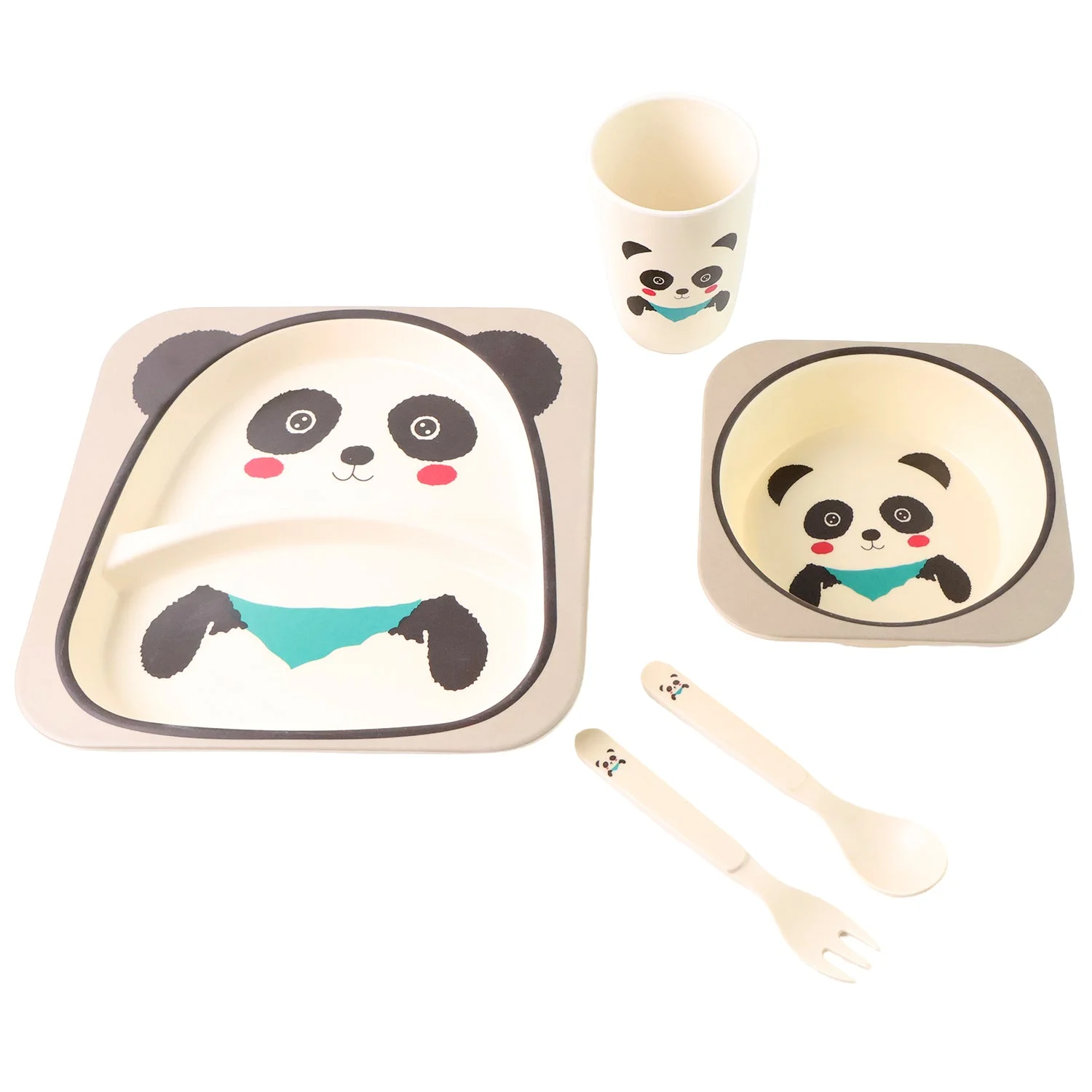 5-Piece Eco-Friendly Panda-Themed Kids Dinnerware Set – Bamboo Fiber Plate, Bowl, Cup, Spoon & Fork – Lightweight, Durable & Safe for Toddlers