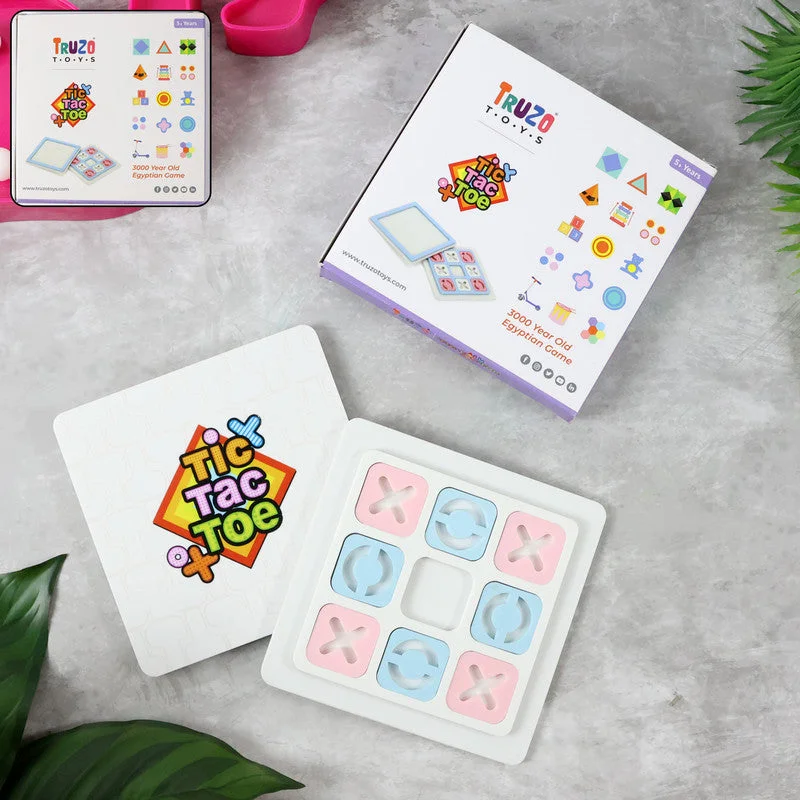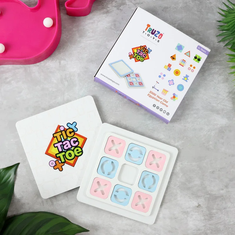 This Tic Tac Toe board game is a modern twist on the classic 3000-year-old Egyptian strategy game, designed especially for kids. It comes with colorful X and O pieces in soft pastel shades, making it both engaging and visually appealing. The compact design makes it easy to carry and play anywhere, helping children develop logical thinking, problem-solving skills, and strategic planning. A perfect blend of fun and education, this game encourages interactive play and strengthens focus and memory in children.