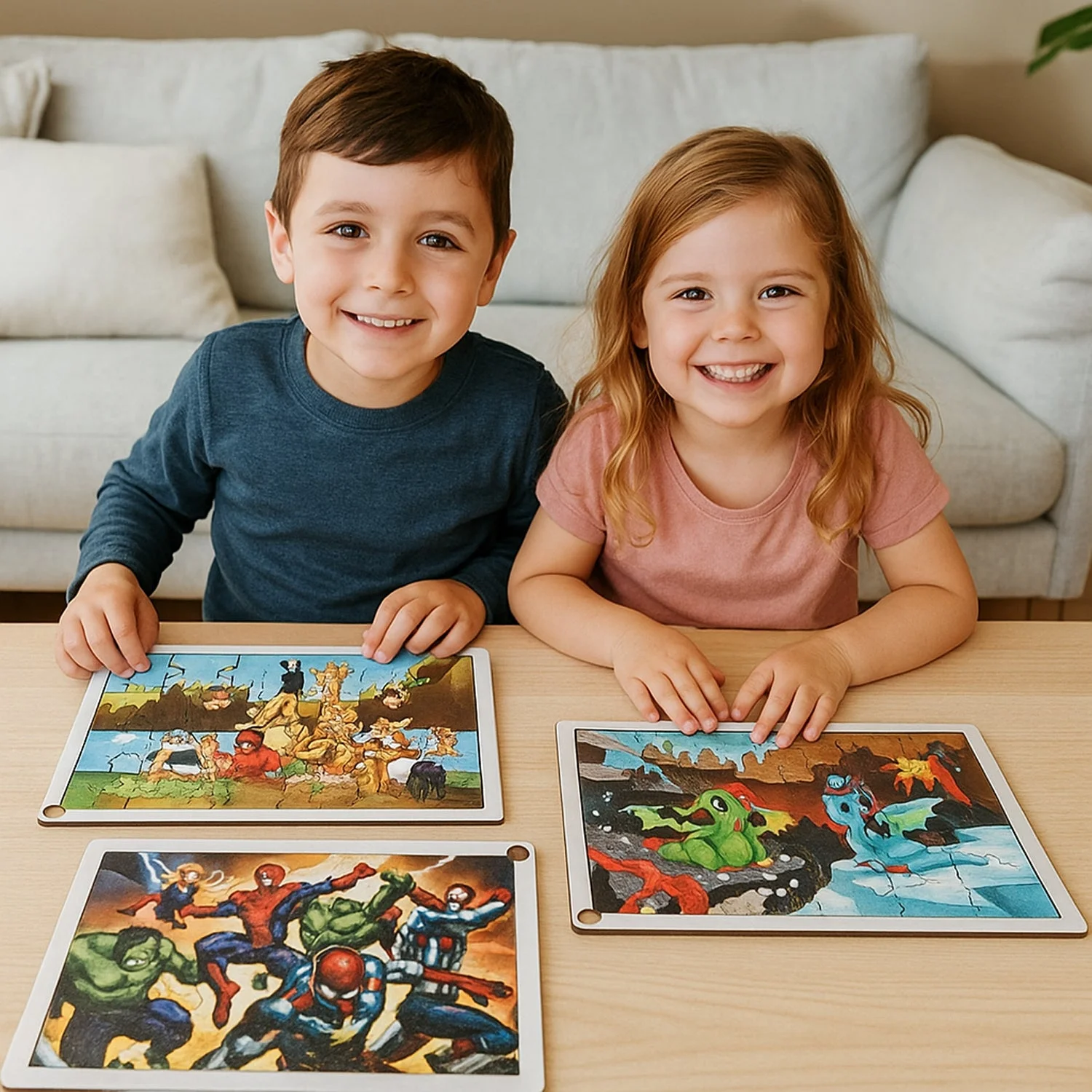 Spark curiosity and focused play with this colorful educational jigsaw puzzle board. Each board comes in mix designs—from cute animals and fantasy creatures to action-packed hero scenes—so kids stay engaged while they learn. The sturdy board base keeps pieces aligned, helping little hands assemble the picture with ease. As children sort shapes and match artwork, they naturally build problem-solving, concentration, and fine-motor skills. Smooth, child-safe edges and durable printing make it a reliable choice for everyday play, travel, or classrooms. Fun, screen-free, and skill-building—this puzzle is a smart addition to any toy shelf.